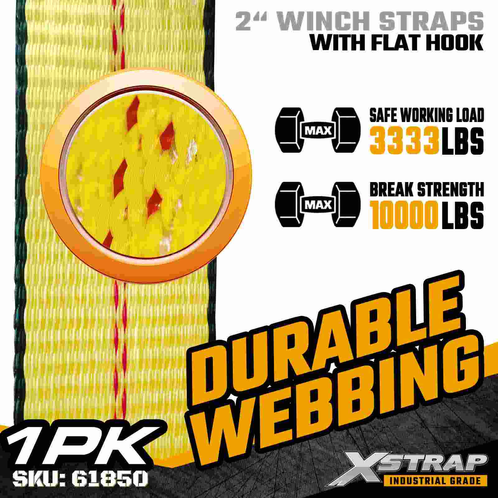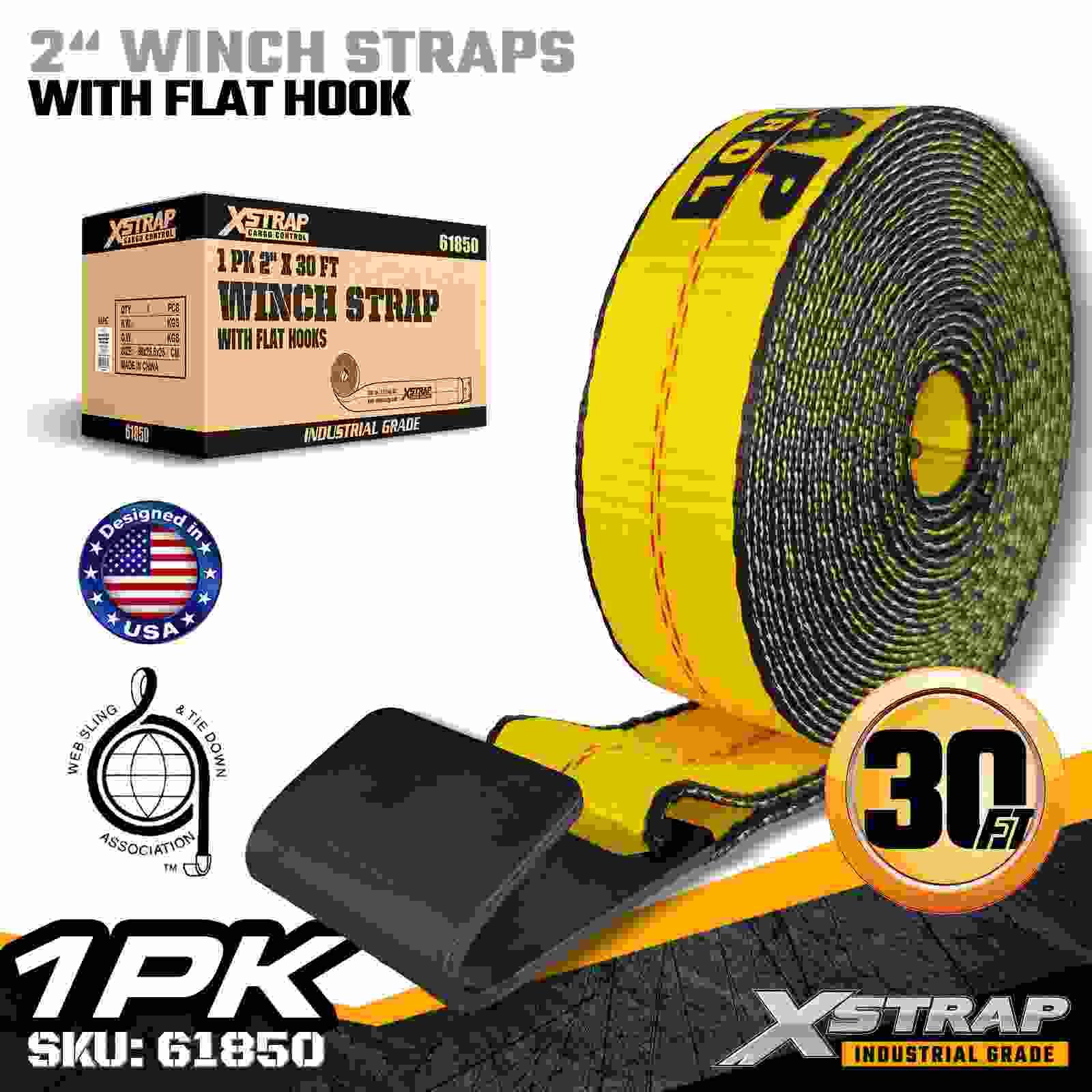 Xstrap 61850 2" × 30 ft standard spilstrop er bygget til pålidelig fastgørelse af fladgods med en forstærket flad krog og højstyrke polyesterbånd. Med en arbejdsbelastningsgrænse på 3.333 lbs og 10.000 lbs brudstyrke giver den pålidelig ydeevne til daglig fragt, tømmer, generel rørbelastning og paller. logistikapplikationer.
