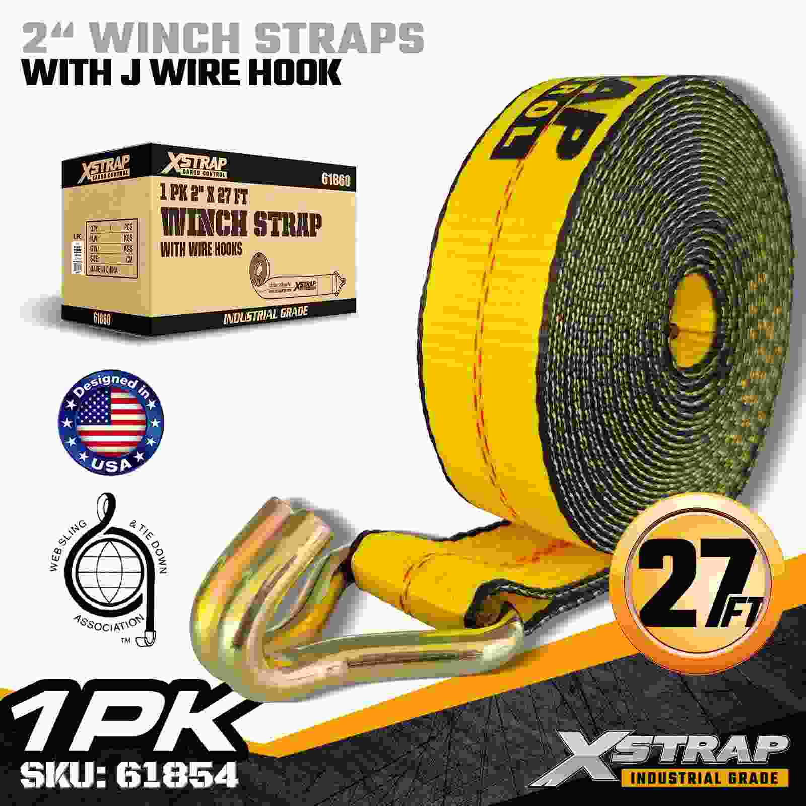 Xstrap 61854 2" × 27 ft standard spilstrop er en holdbar og pålidelig lastsikringsløsning designet til fladvogne og professionel transport. Med en stærk Trådkrog og højstyrke polyester bånd, leverer denne 2" spilstrop en 3.333 lbs arbejdsbelastningsgrænse til 100 lbs og 100 lbs. paller, tømmer, rør, maskineri og generel fragt under daglige transporter.