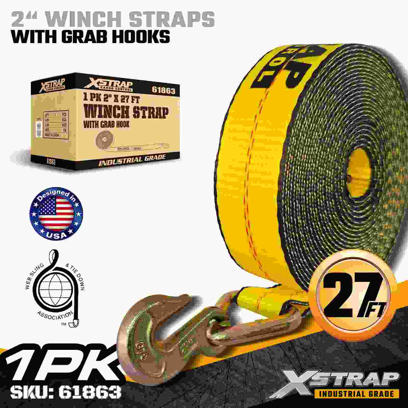 Xstrap 61863 2" × 27 ft standard spilstrop er designet til pålidelig fastgørelse af lastgods med en robust gribekrog og højstyrke polyesterbånd. Med en arbejdsbelastningsgrænse på 3.333 lbs og 10.000 lbs brudstyrke leverer den pålidelig ydeevne til daglig læsning af paller, generel fragt af paller, lastrør, pallerør, logistikapplikationer.