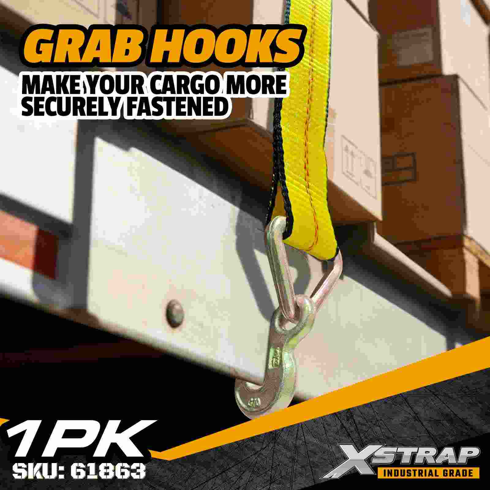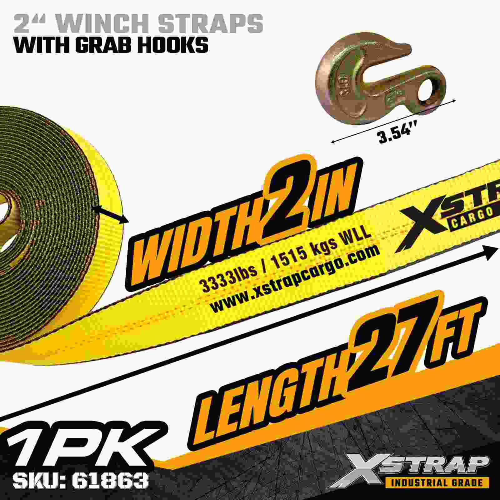 - 27 ft længde til alsidige lastanvendelser: 27 ft webbing giver ideel rækkevidde til sikring af paller, tømmer, rør og blandet gods - velegnet til daglige flatbed-operationer.