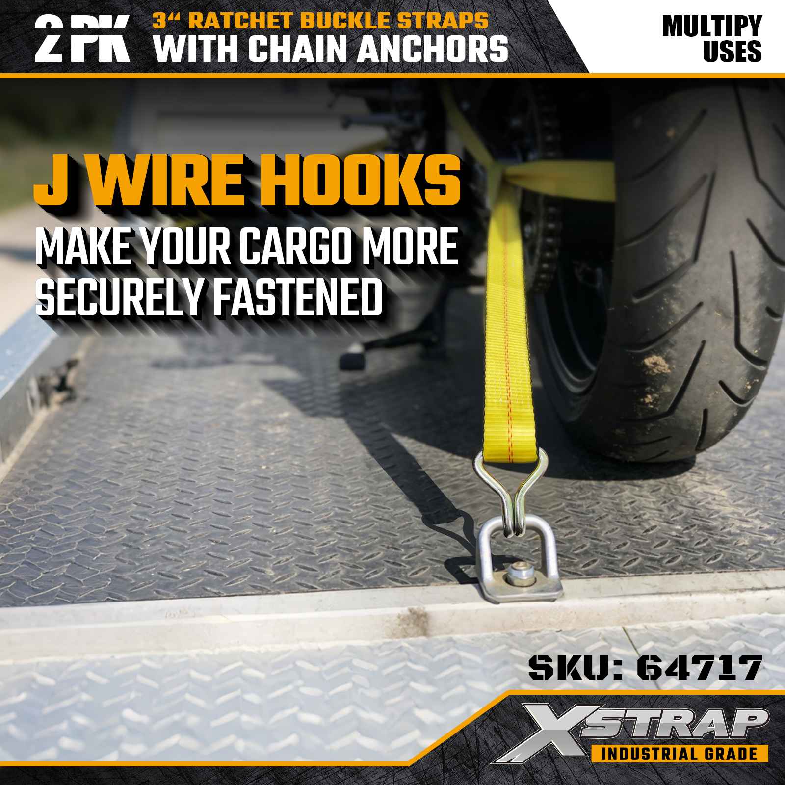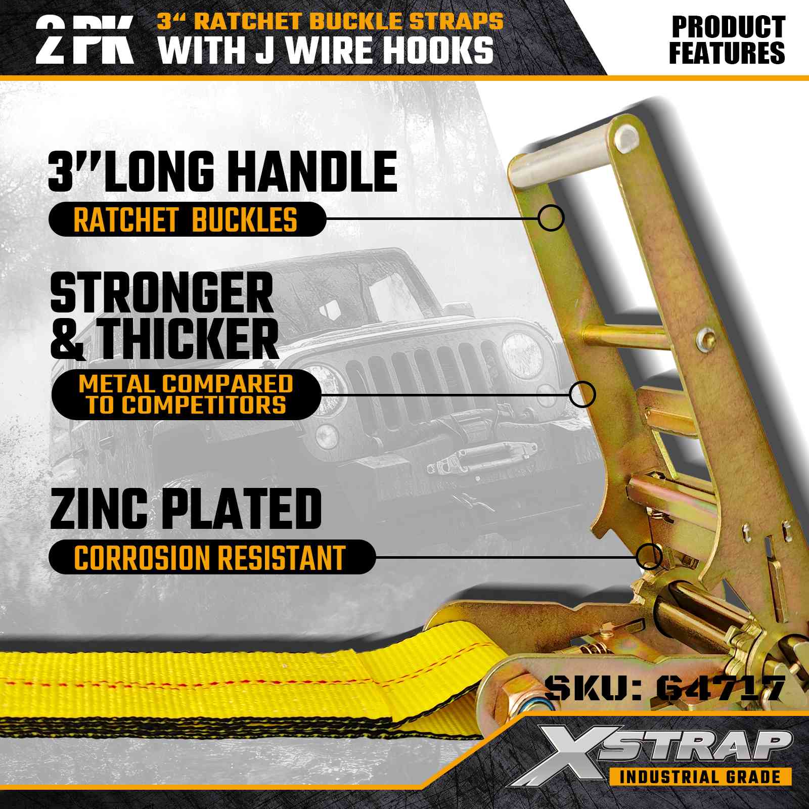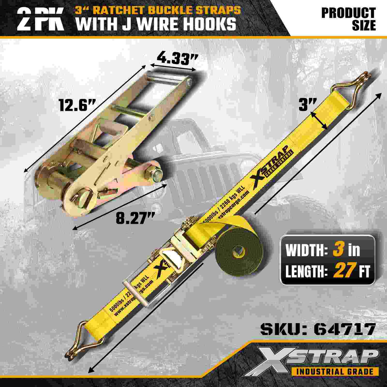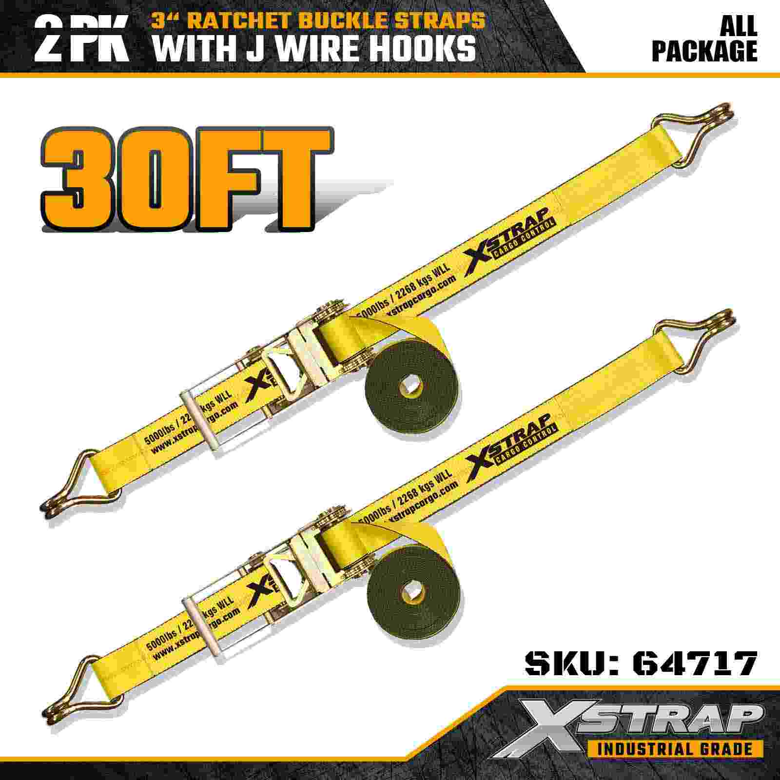 Xstrap 64717 3" × 30 ft skraldespændestropper (2-pak) er konstrueret til professionel lastsikring, med forstærkede wirekroge og en kraftig skraldemekanisme. Med en arbejdsbelastningsgrænse på 5.000 lbs og 15.000 lbs, og 15.000 lbs, leverer disse pålidelige, flad- og rækkevidde, flad maskine ydeevne. transport og industritransport.