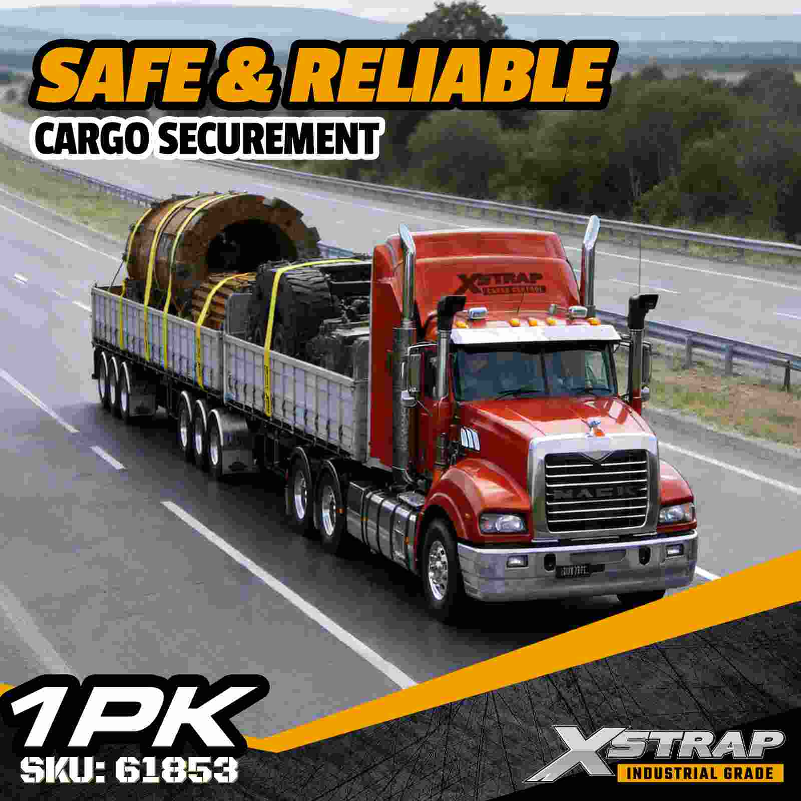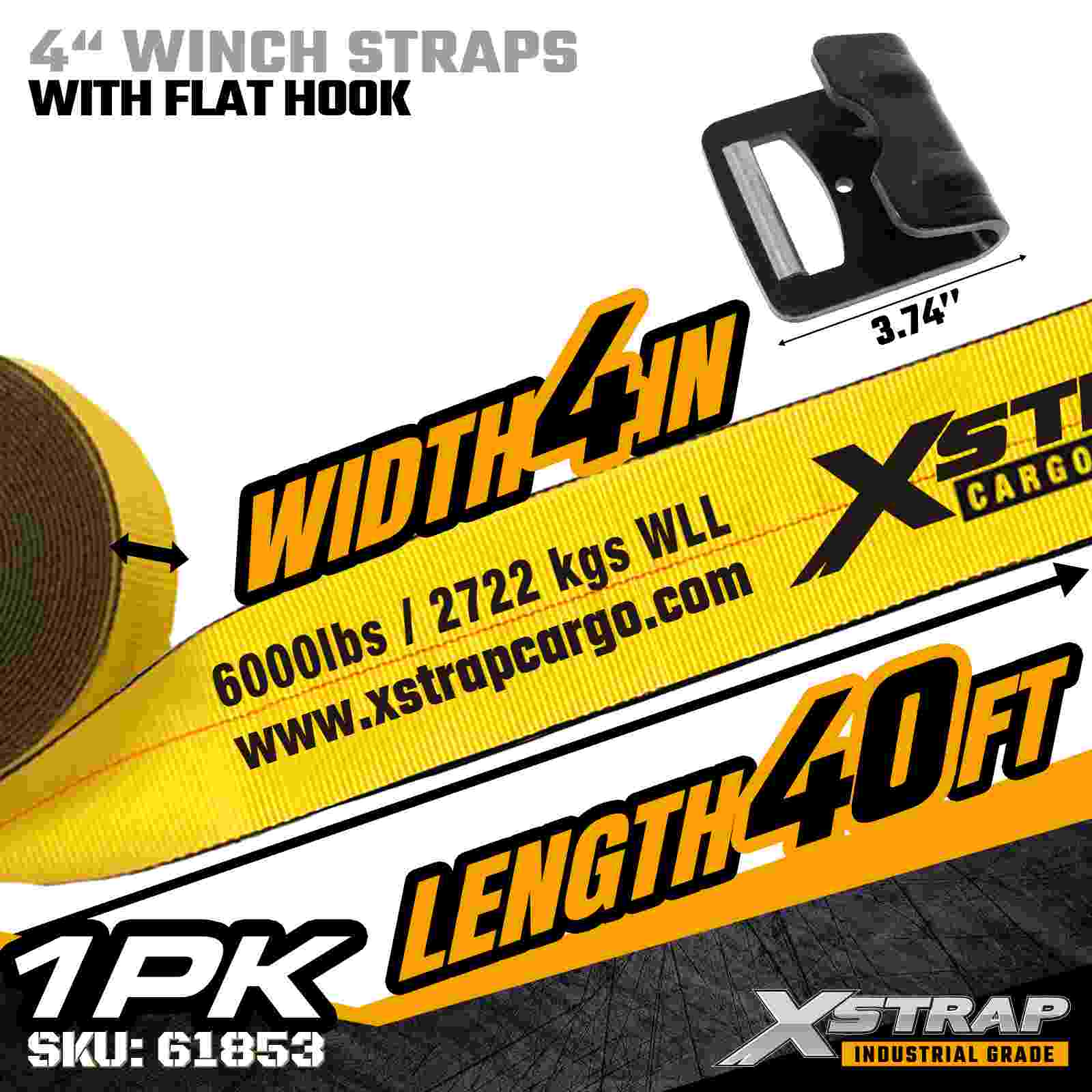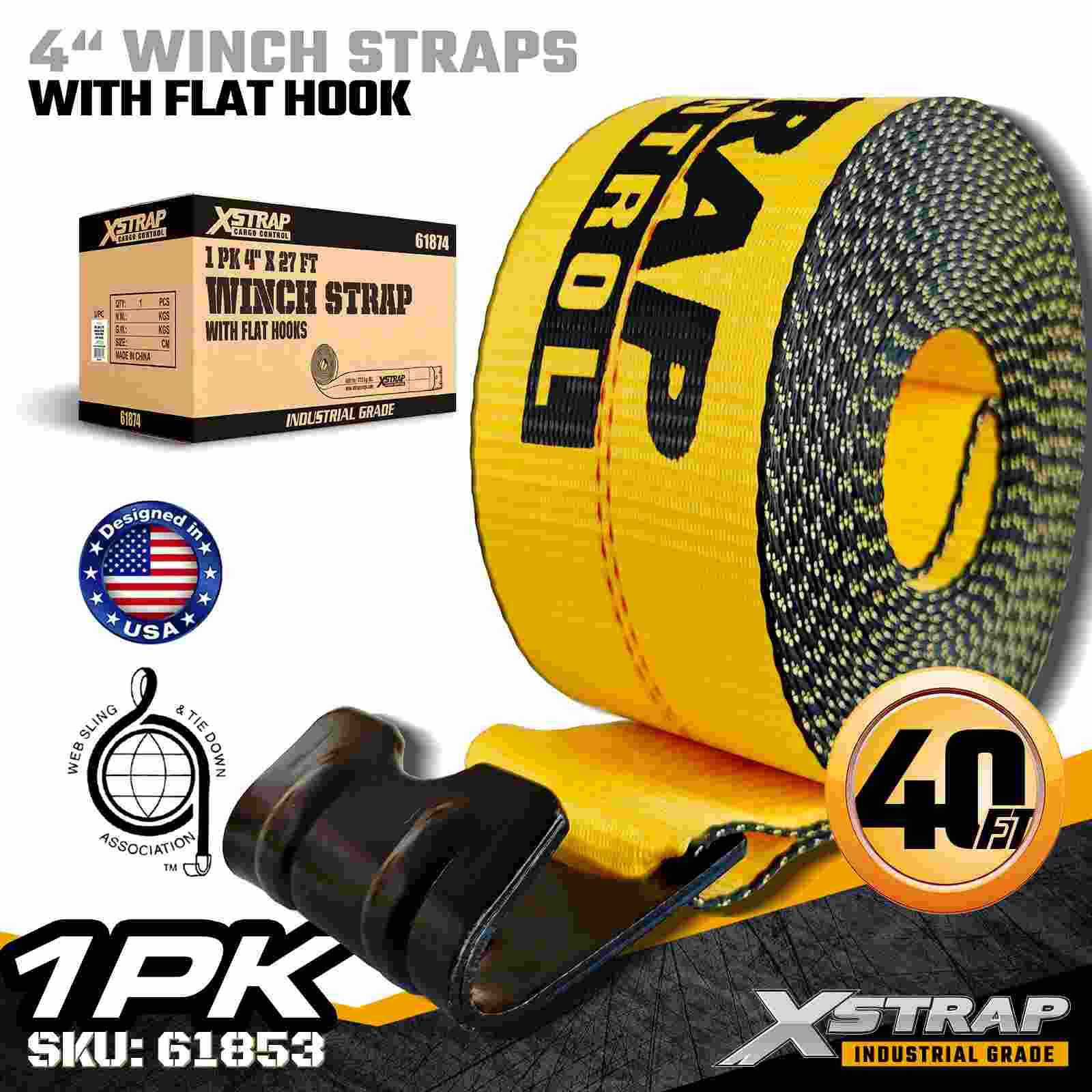 Xstrap 61853 4" × 40 ft standard spilstrop er en lastsikringsrem med høj kapacitet og udvidet rækkevidde, der er udviklet til fladvogne og overdimensioneret industrifragt. Med en forstærket flad krog og ekstra bred 4-tommer polyesterbånd, leverer denne 4" spilstrop, Work000 6,000 lbs. 18.000 lbs Break Strength Den ekstra lange 40ft længde giver enestående rækkevidde til at sikre brede, høje eller uregelmæssigt formede laster, der kræver maksimal dækning og stabilitet.
