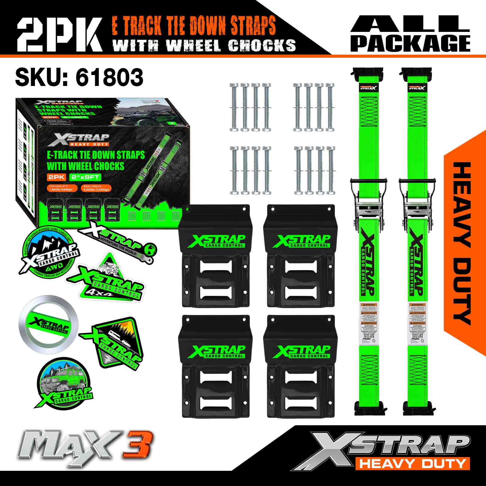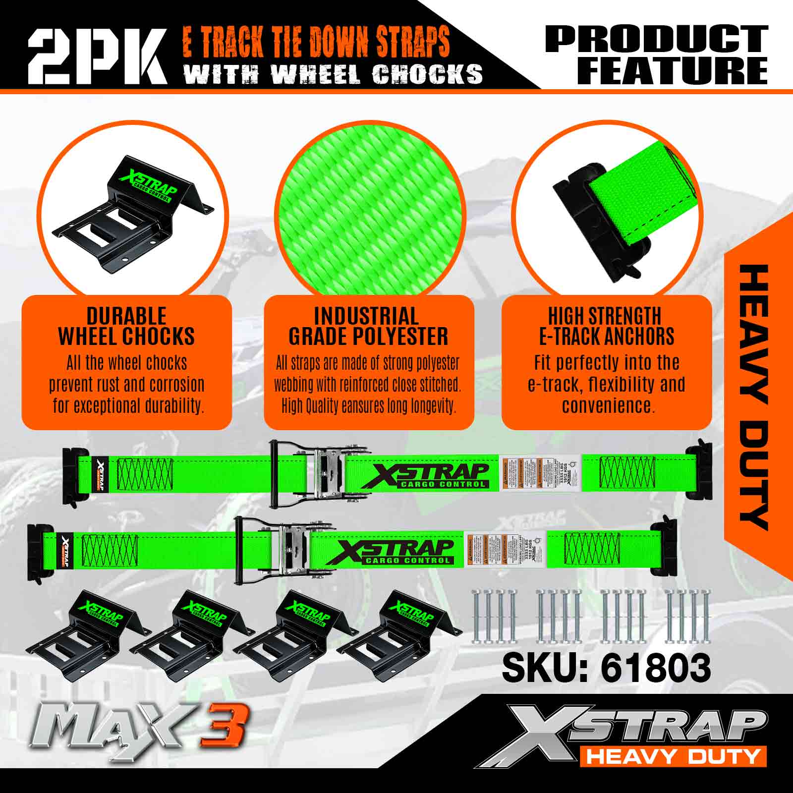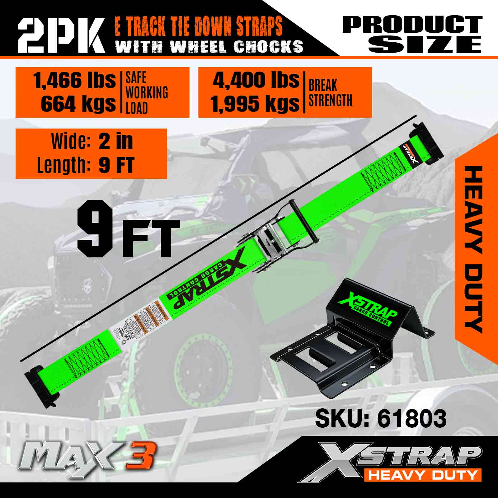 Xstrap E-Track hjulopklodsningssæt, 2in*9ft kraftige stropper til biltrailer UTV ATV, skraldebinding med dækstropper (2 pakke)