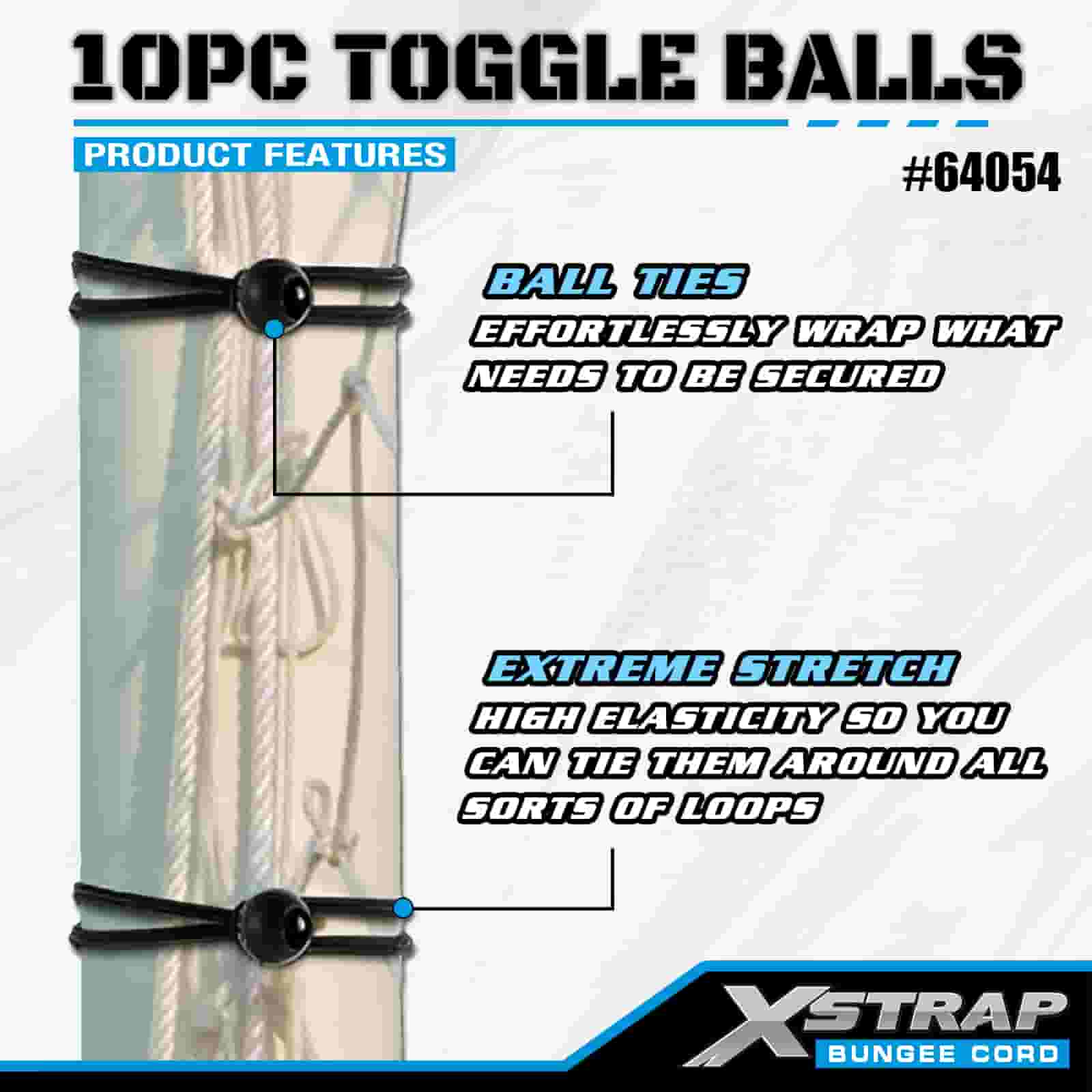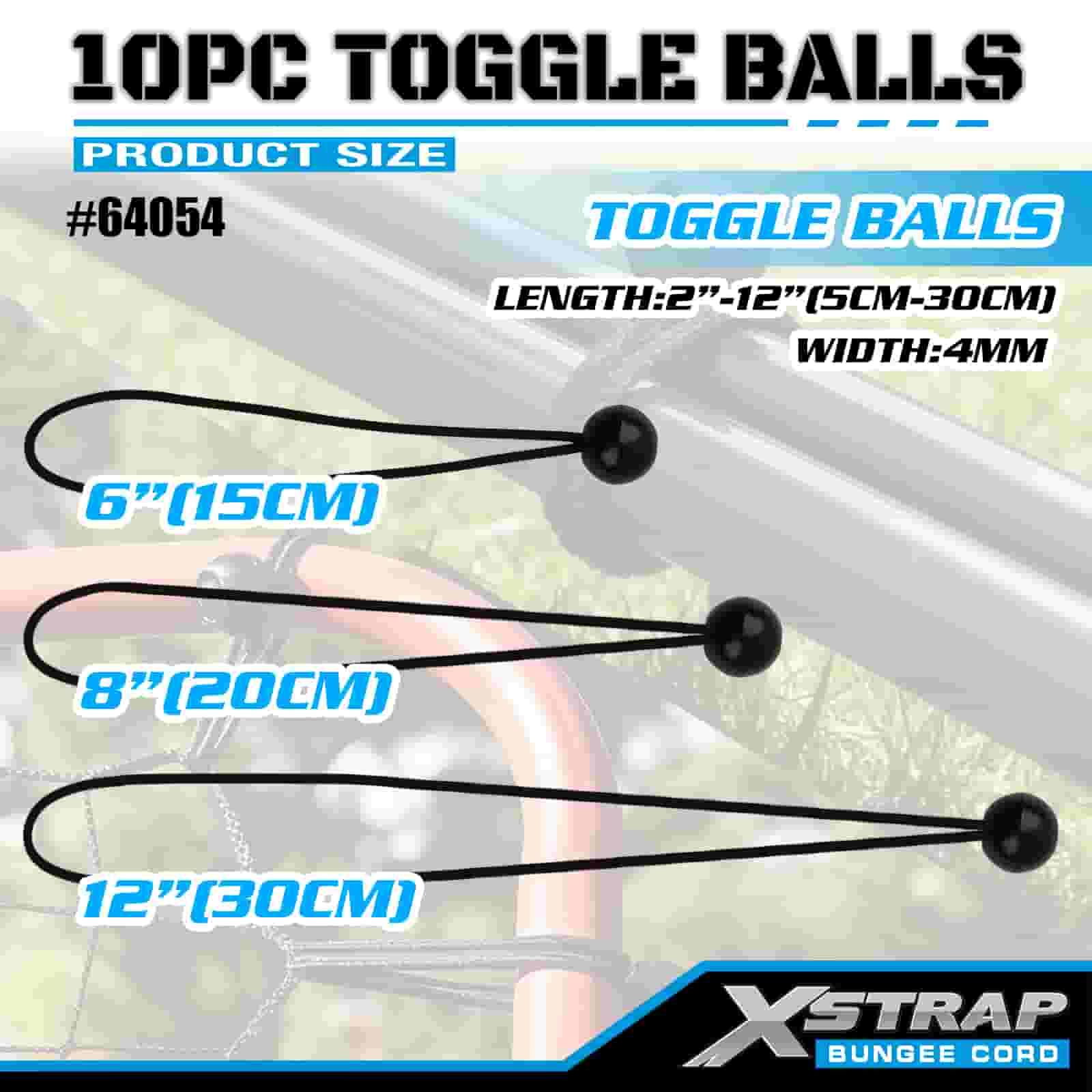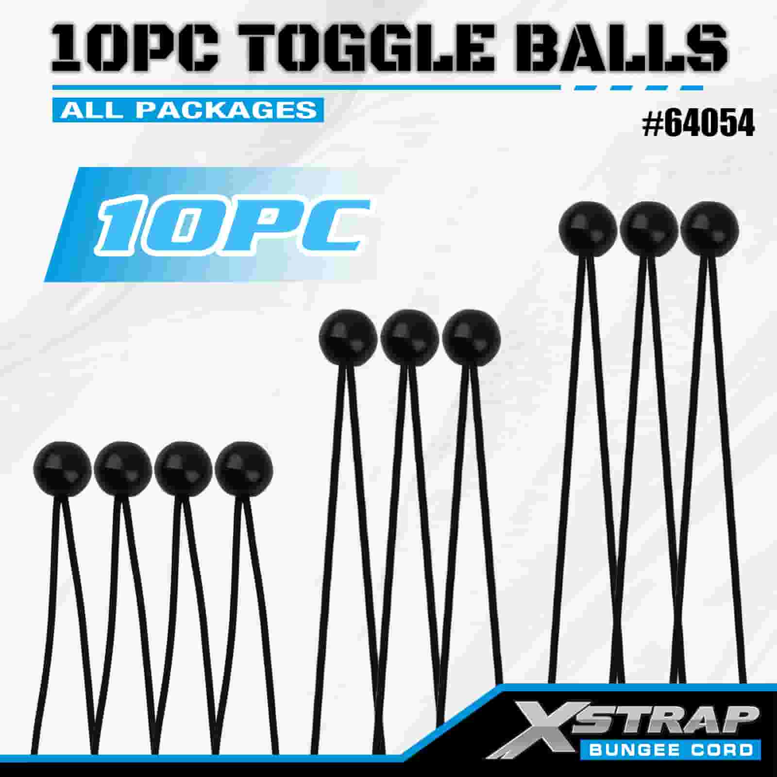 Xstrap 10PK Toggle Balls 4 mm x 2"-12", bungee-bolde i forskellige størrelser til Lastkontrol.