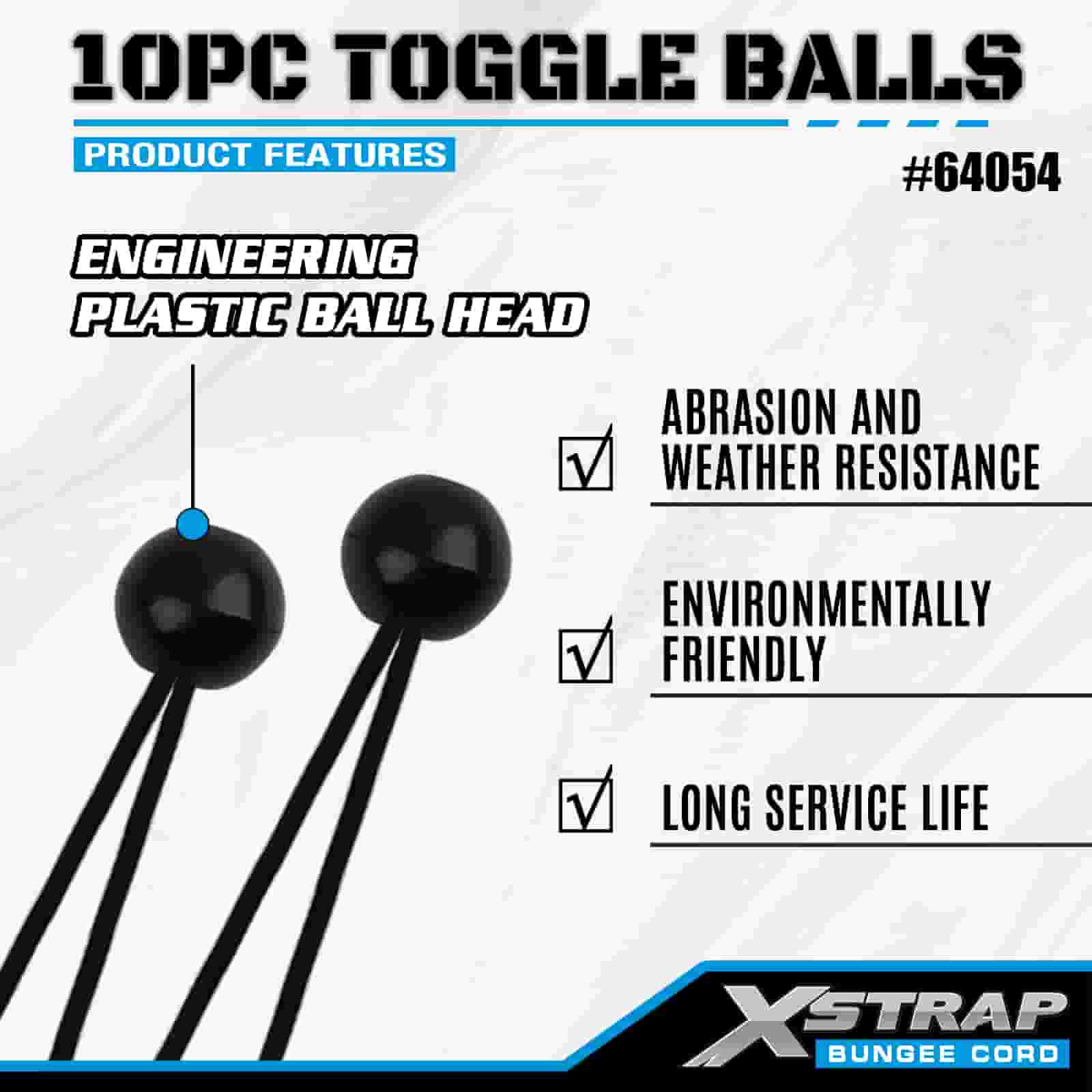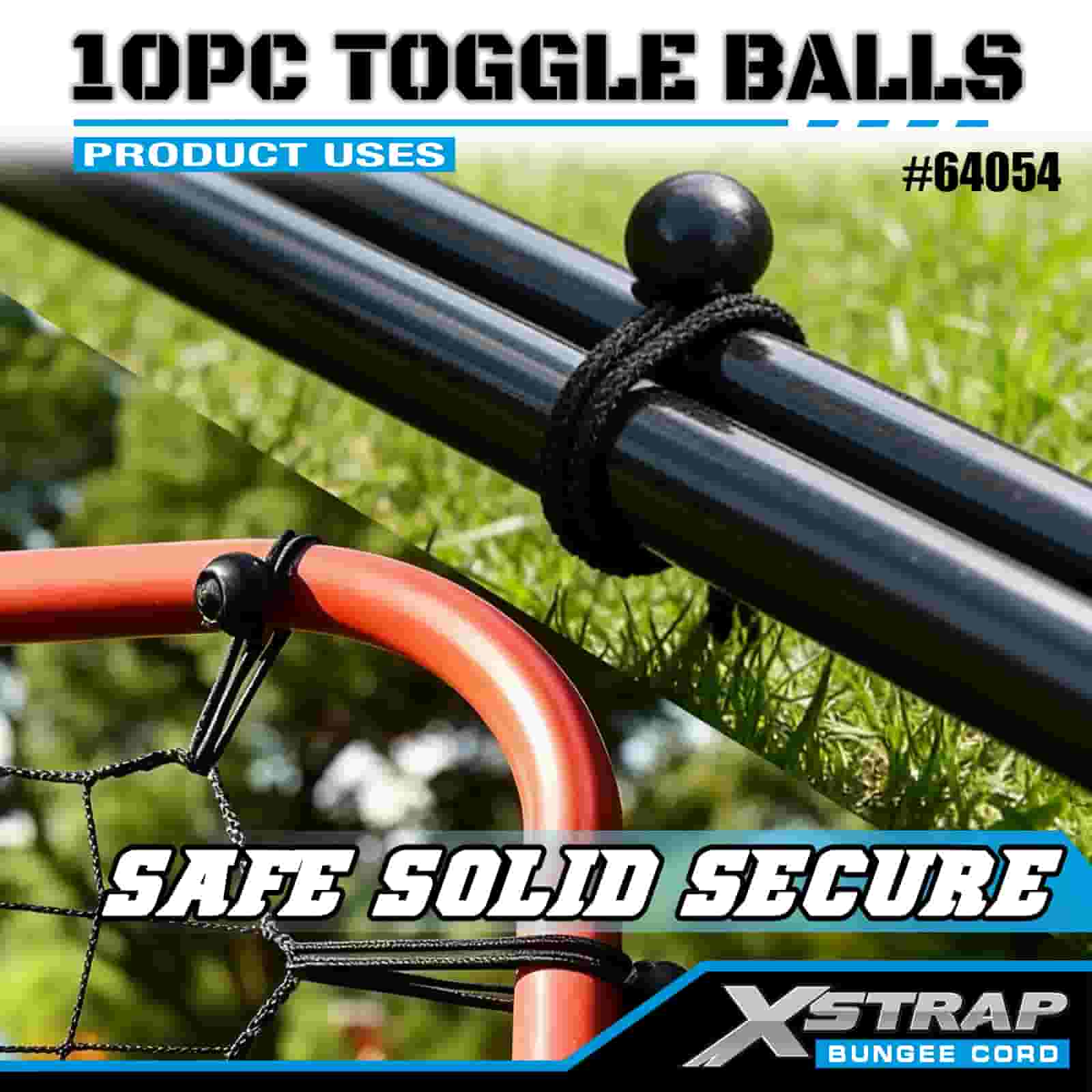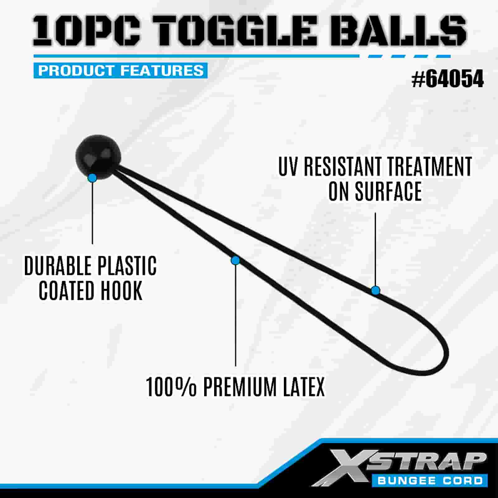 Xstrap 10PK Toggle Balls 4 mm x 2"-12", bungee-bolde i forskellige størrelser til Lastkontrol.