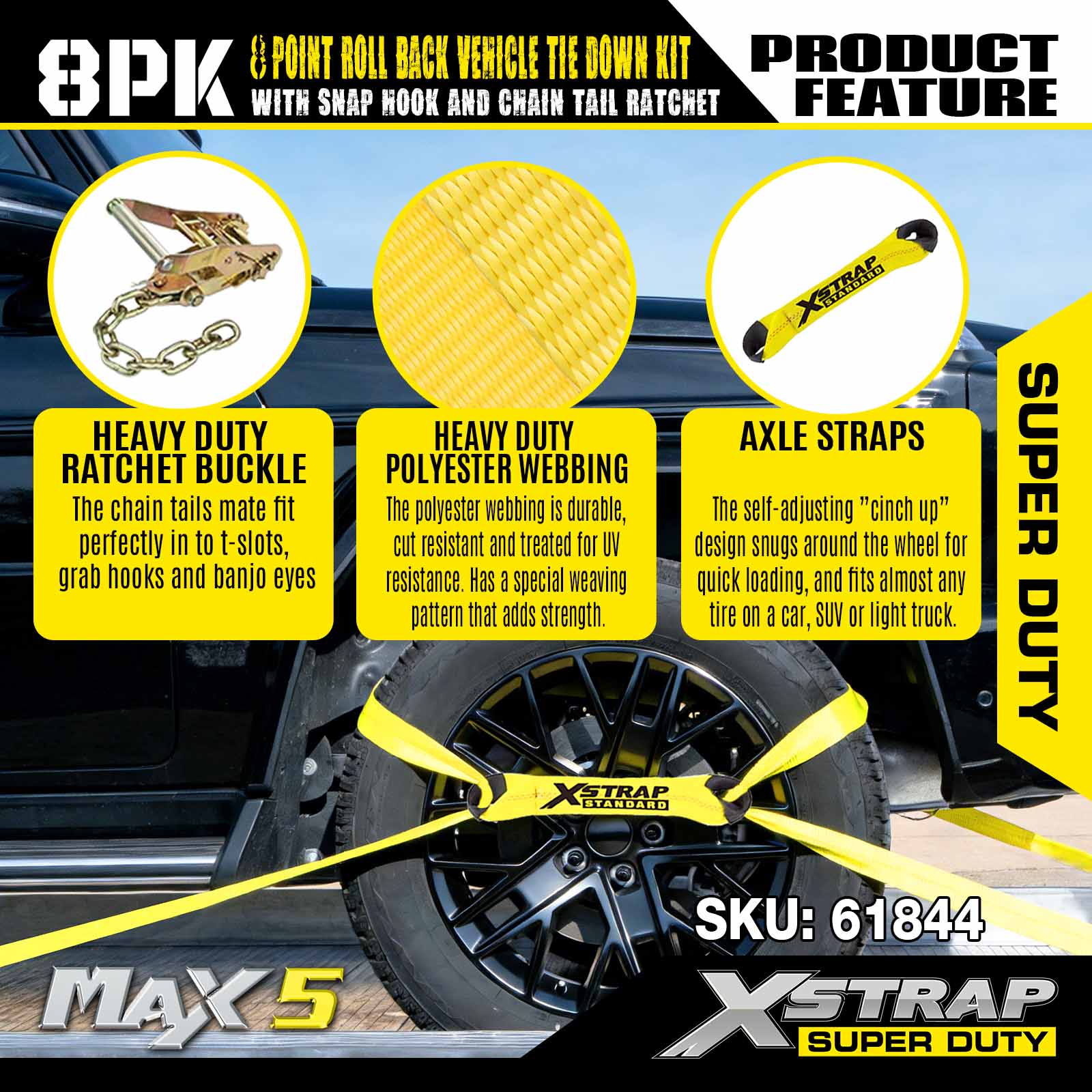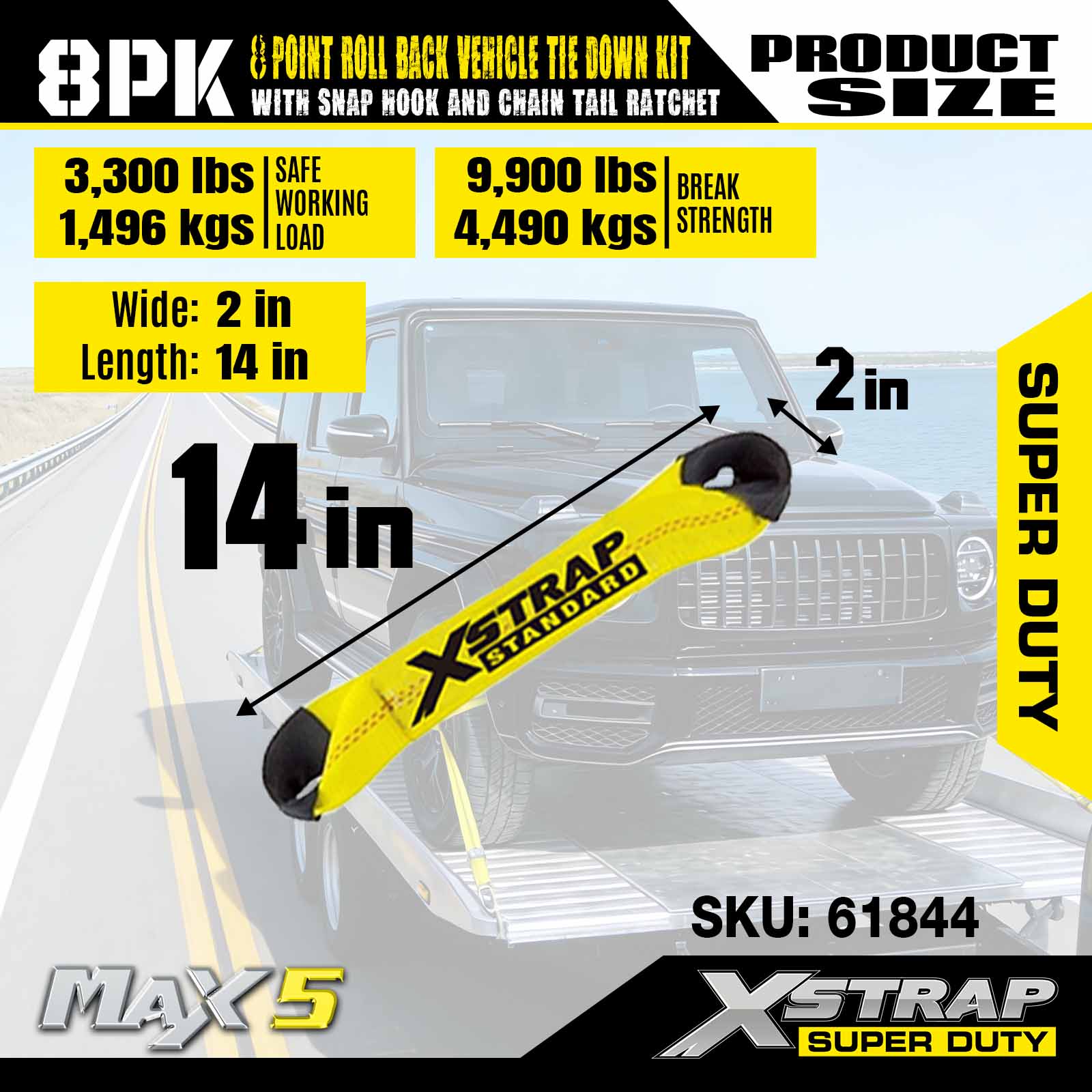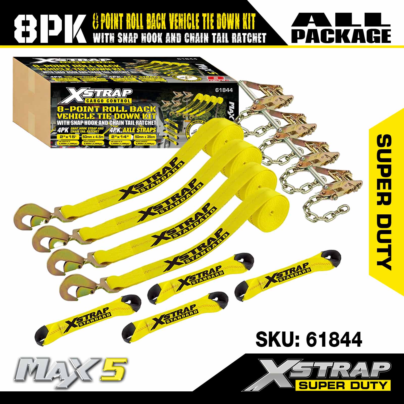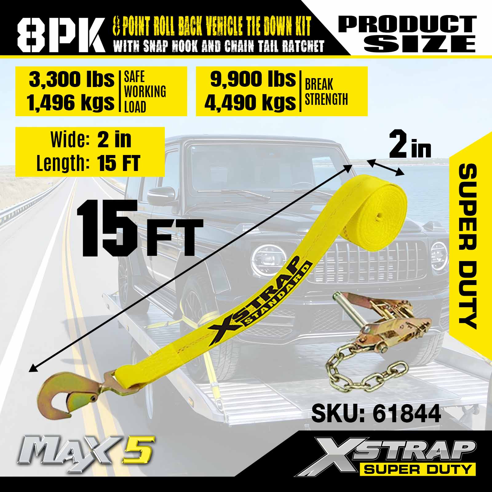 2" x 114" 8-punkts fastspændingssæt til køretøjer, der kan rulle tilbage