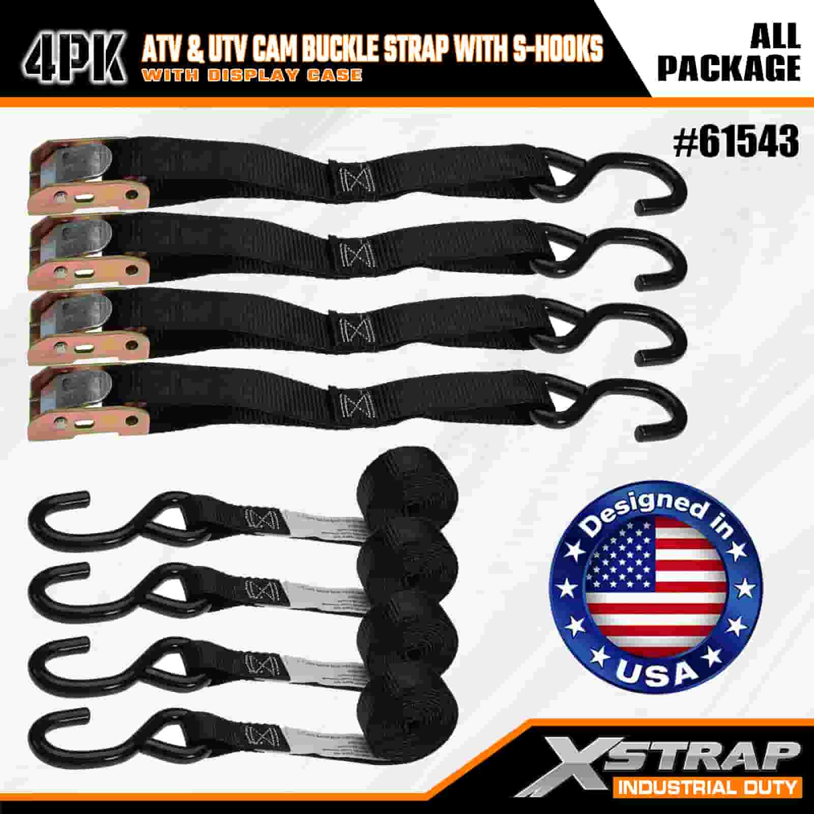 - 4 Pack 6FT Størrelse:1 tomme bredde fordeler spændingen jævnt for at undgå skader. 6 fods længde passer til lastbilsenge trailere eller opbevaringsreoler. Den 4-pakke giver dig nok stropper til at sikre alle dele af din ATV UTV eller gear.