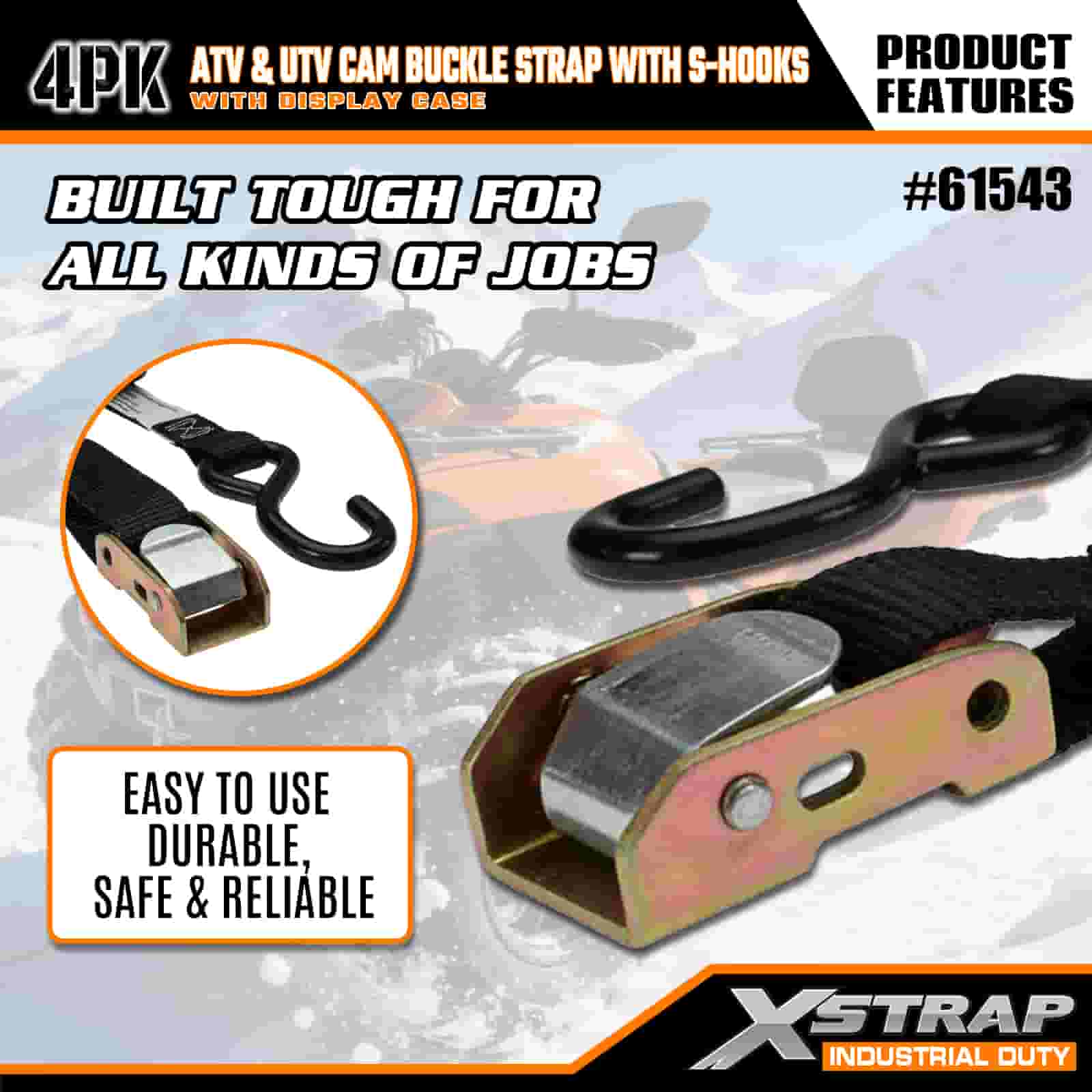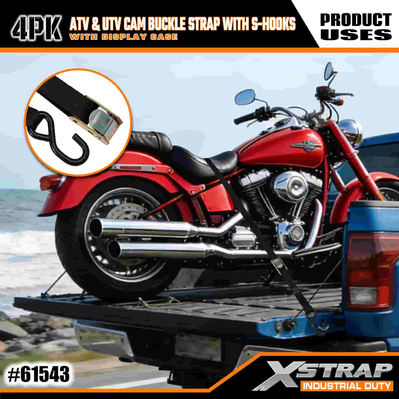 Xstrap 4PK ATV- og AUV-kameraspændestrop med S-kroge, 1" x 6' Polyester-bindingsstrop Pull Ratchet spændestrop, 400 lbs Kapacitet Cargo Surring Sikringsstropper med S-krog til den seriøse professionelle til at sikre fragttrailer, fladvognsanhænger, skibåd.