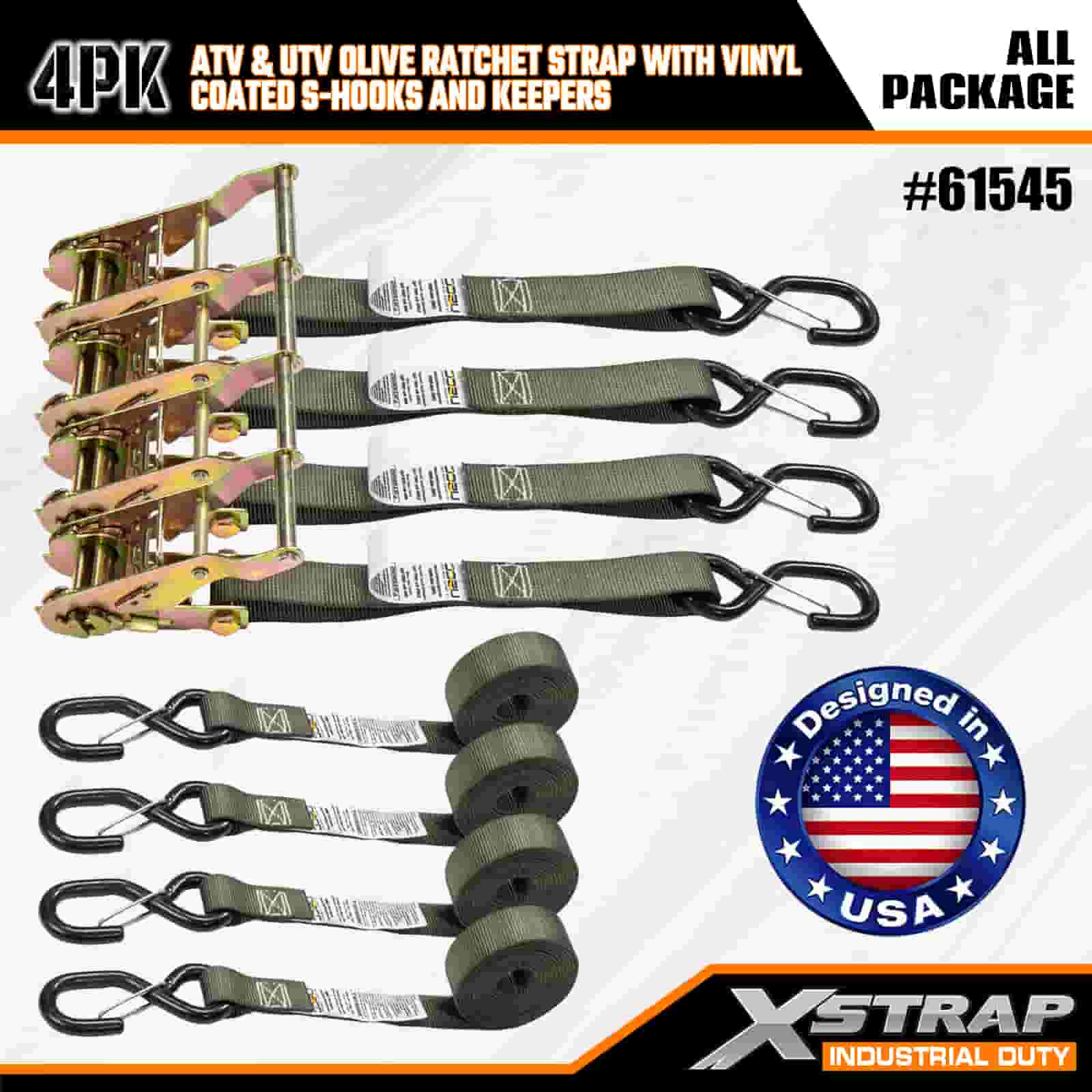 Xstrap 4PK Ratcet Ratchet Strap med Vinyl Coated Safety S kroge, 1" x 8' Polyester Tie Down Strap Ratchet Strap, 833lbs Kapacitet Cargo Surring Sikringsstropper med Safety S kroge til Heavy Duty Trailer, Flad Bed Trailer Skibåd, Lille Bil, Heavy Udstyr.
