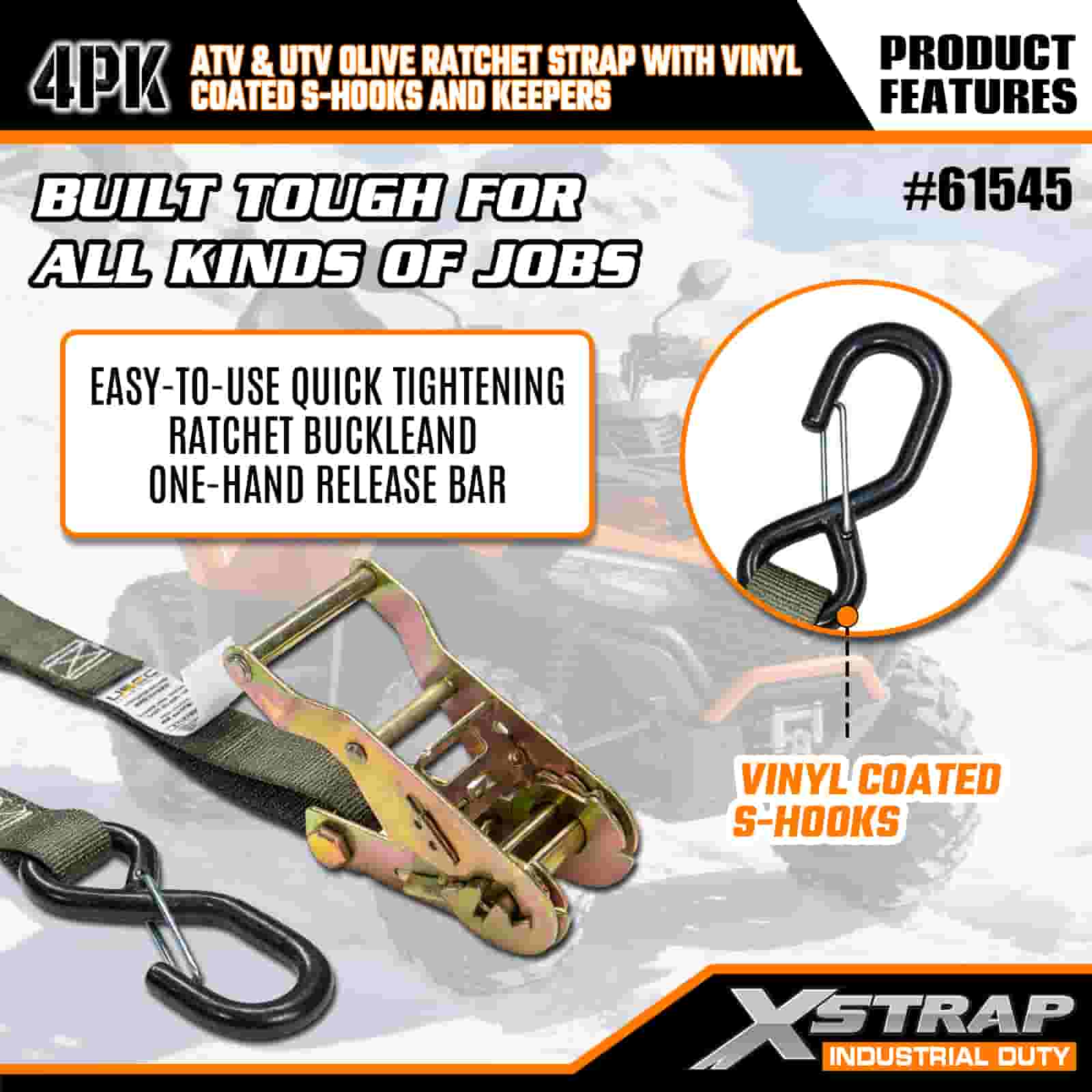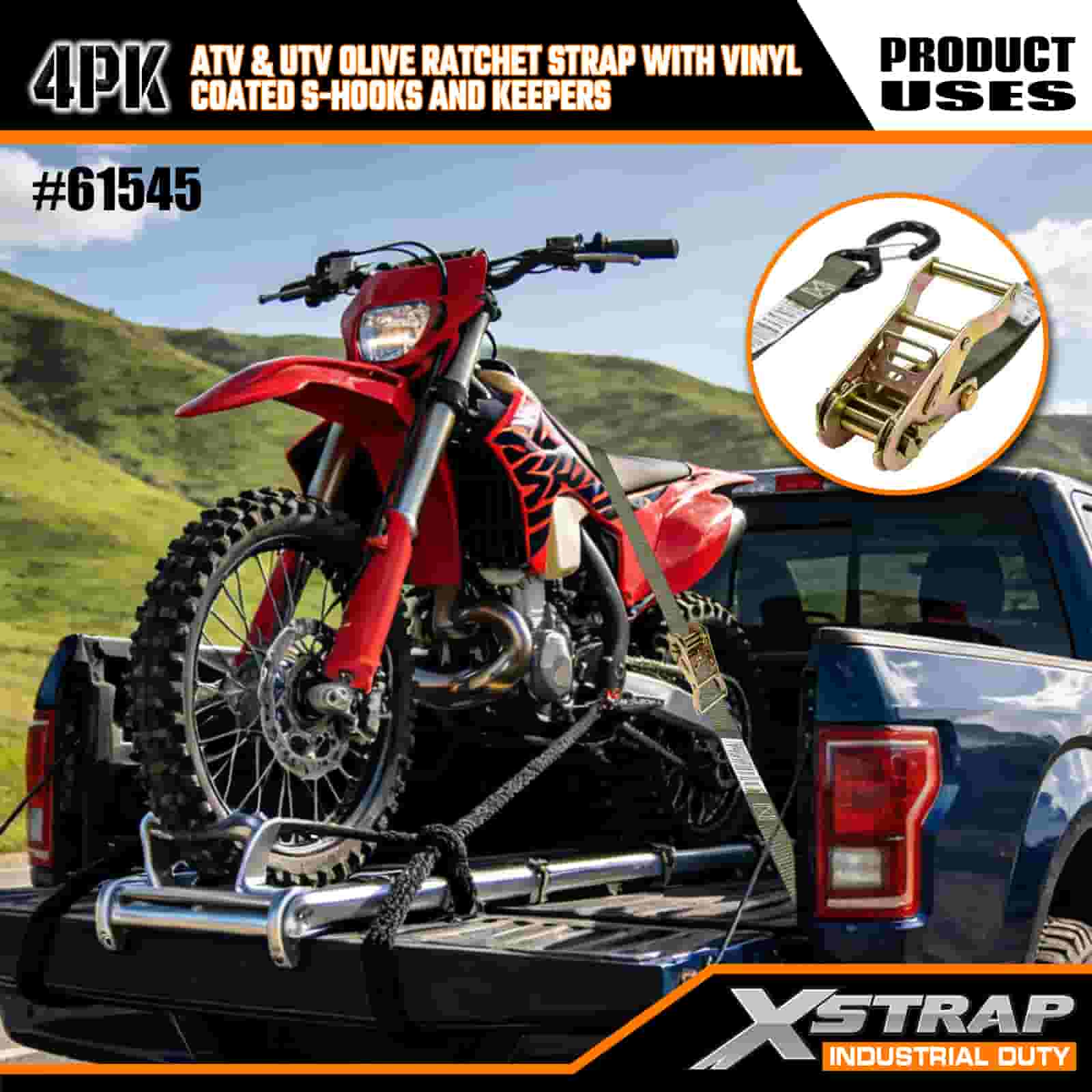 - Designet til Off Road Adventures: Uanset om du er på vej ud på stierne med din UTV eller trækker en snavscykel til banen, gør disse stropper stressende lastning til et hurtigt, pålideligt skridt. Det lavprofilerede olivendesign passer ind i dit udstyr, så du forbliver fokuseret på turen.