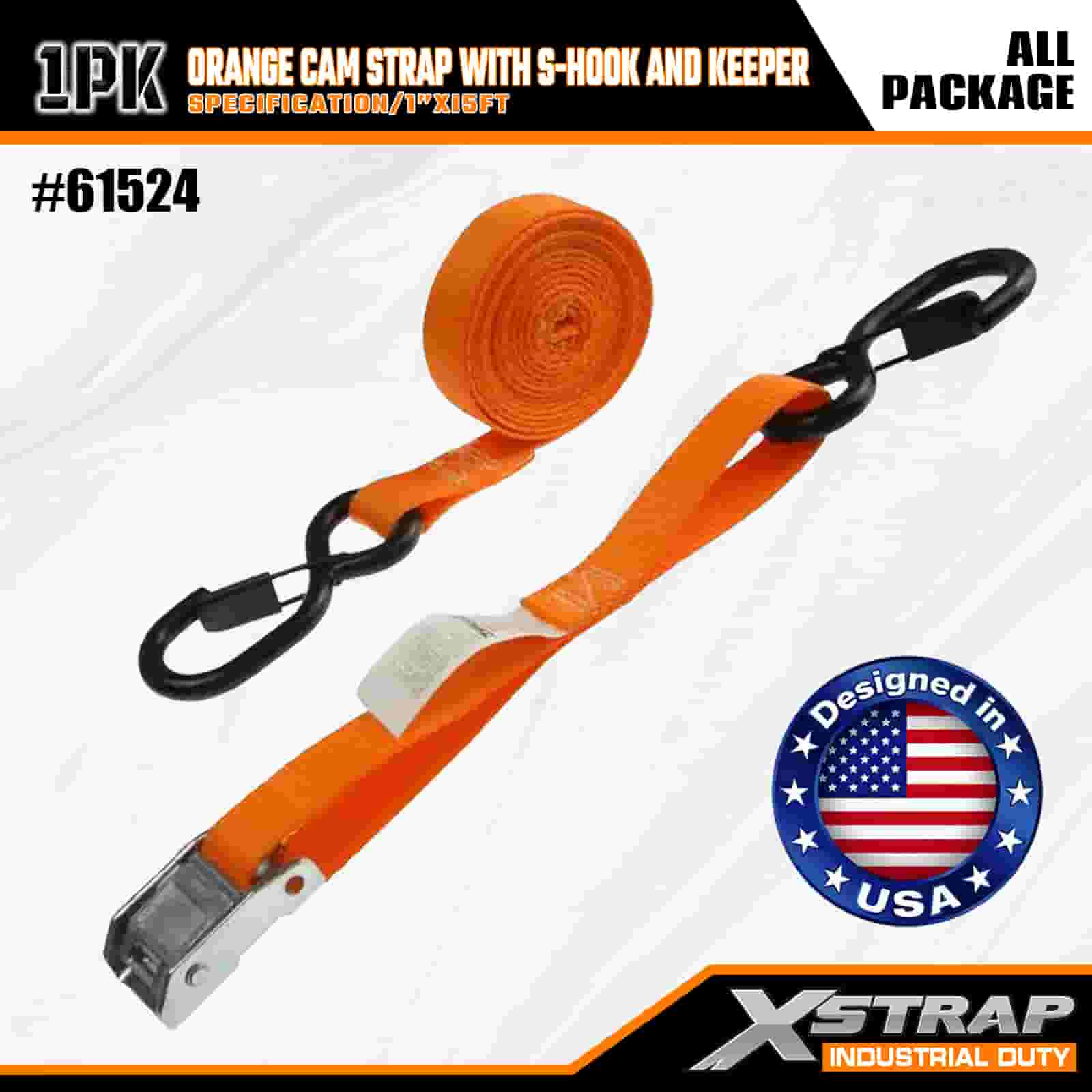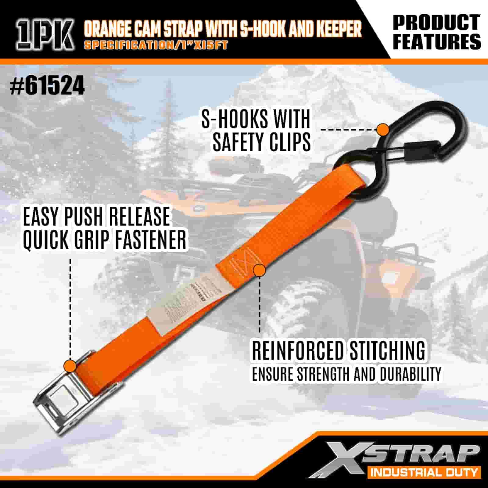 Xstrap Qrange Cam Strap med S-krog og Keeper, 1" x 15" Polyester Tie Down Strap Pull Ratchet Strap, 400lbs Kapacitet Cargo Surring Sikringsstropper med Safety S kroge til den seriøse professionelle til at sikre fragttrailer, fladvogn, skibåd, lille bil.