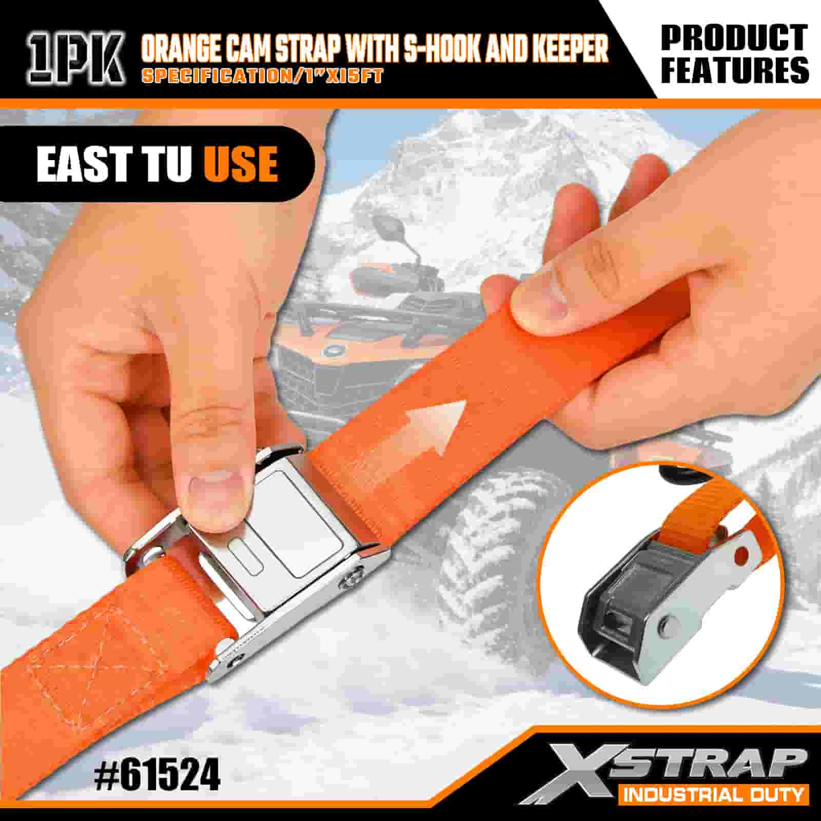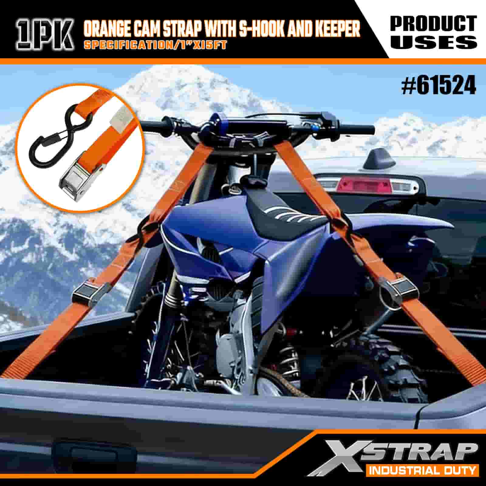 - 15 FT længde til alsidig brug: Sælges som en enkelt rem (1 tomme bred × 15 fod lang) med spoleopbevaring, ideel til at fastgøre ATV'er, motorcykler og udendørs gear i lastbiler eller på tagbøjler.