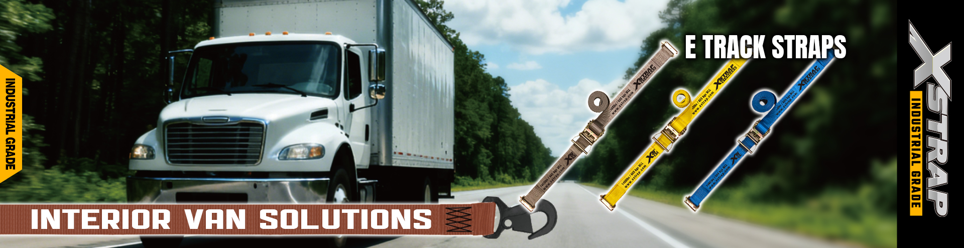 E Track Straps fungerer sammen med E-Track Rail System installeret inde i lastvognen eller traileren.