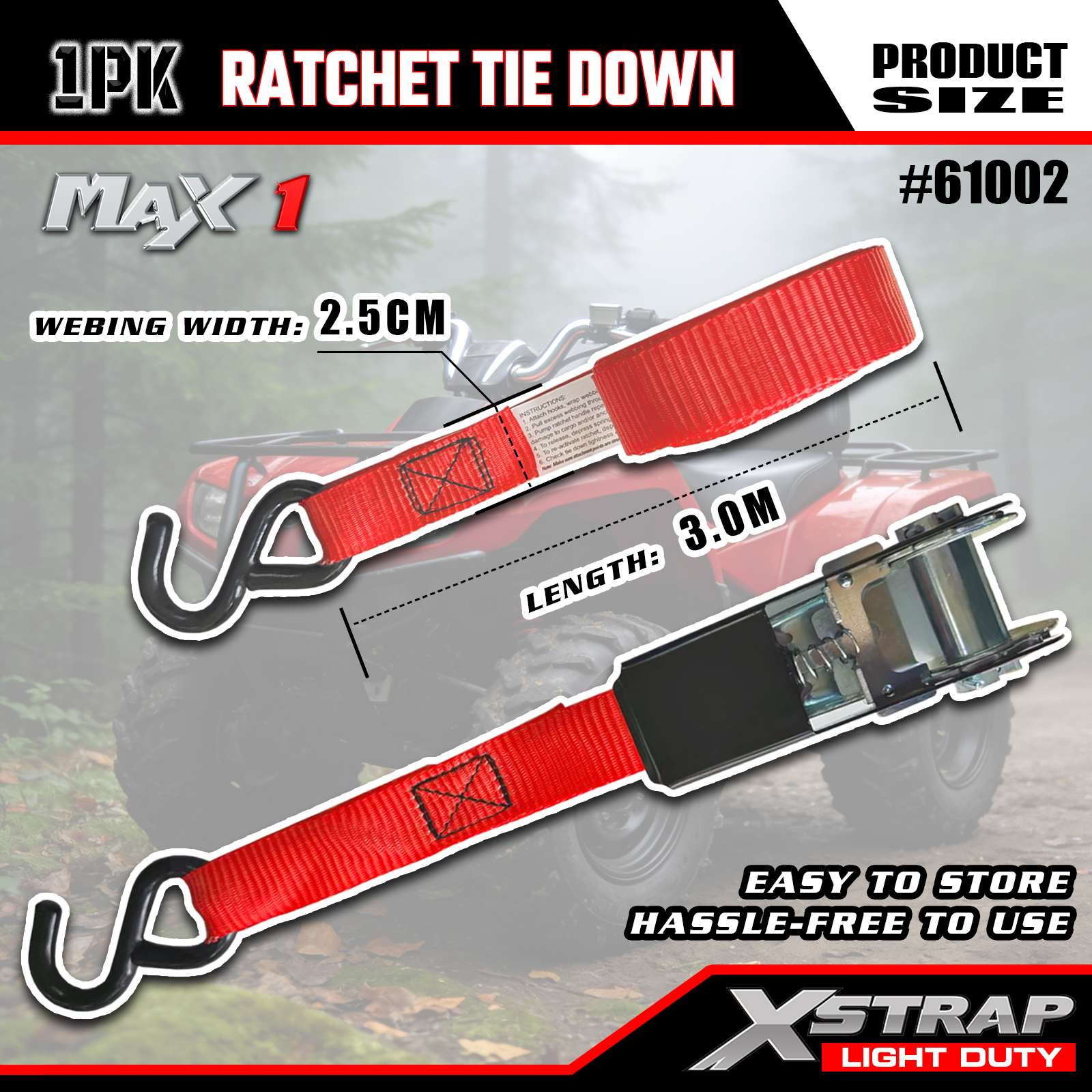 Xstrap 1 Pak Ratchet Tie-Down-stropper, 1"x10' - 300 lbs lasthætte- 900 lbs brudstyrke-lastremme til flytning af apparater, græsplæneudstyr, motorcykel, camouflage