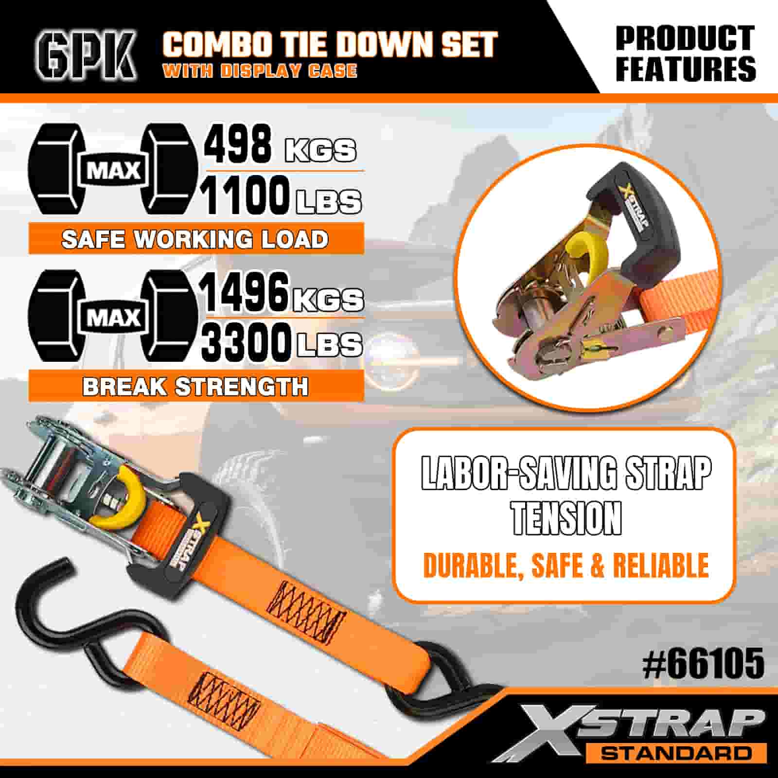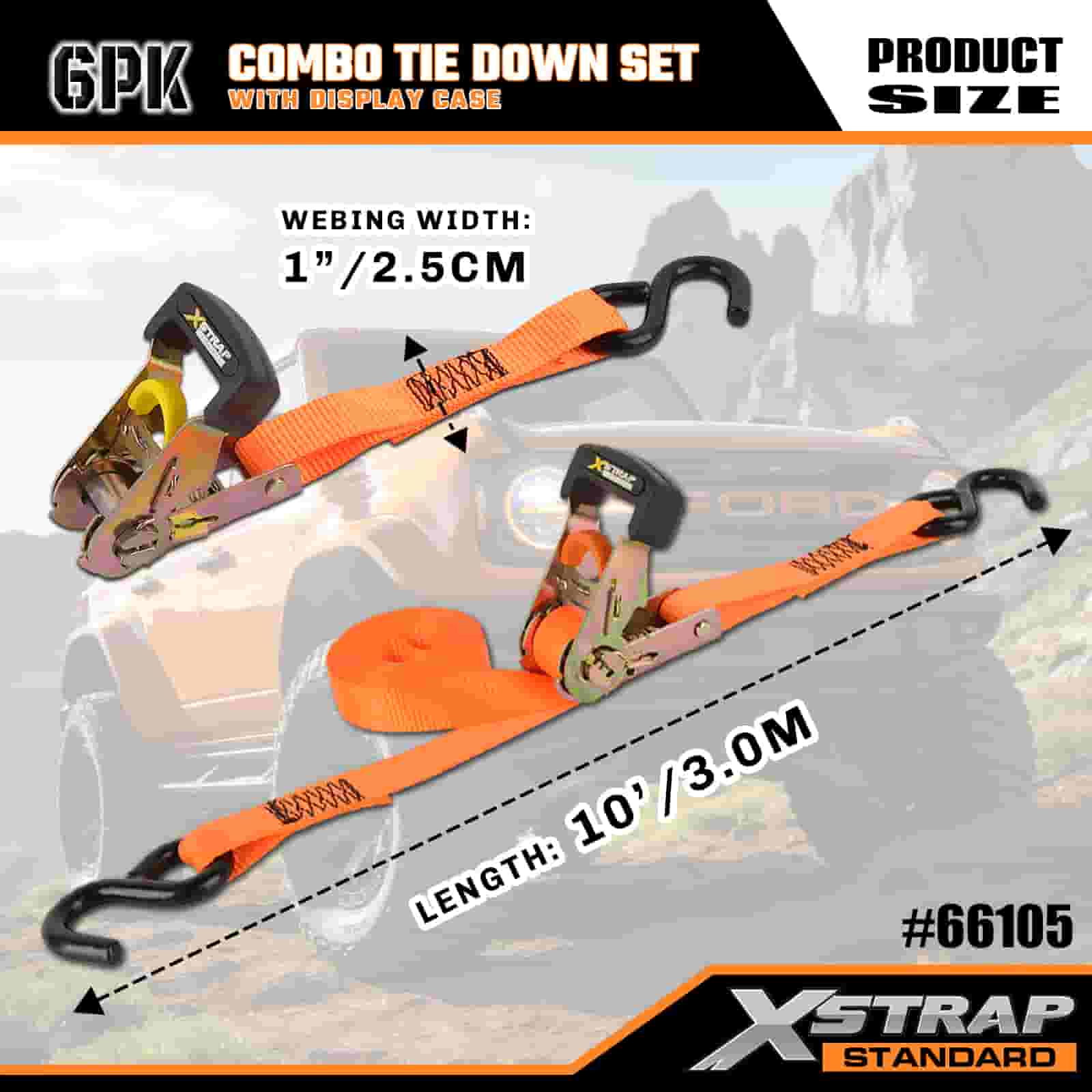 4PK 1" x 14' og 2PK 1" x 10' Combo Tie Down sæt
