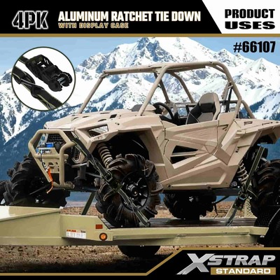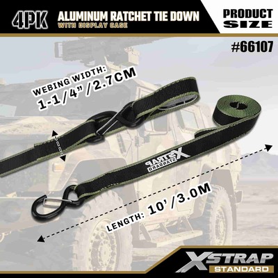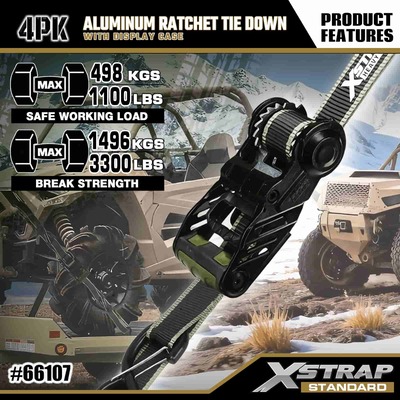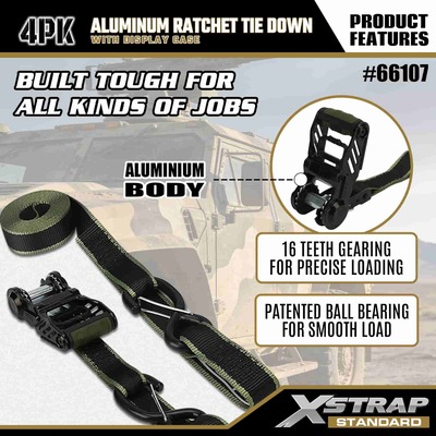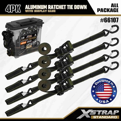 Xstrap 4-pak aluminium skraldebinding, 1-1/4" x 14' polyester bindestrop med blød løkke Pull Ratchet Strap, 1000lbs Kapacitet Lastsurring Sikringsstropper med Sikkerhedskroge til lastkontrol Pickup-truck, SUV, Car Top Racks Motorcykel.