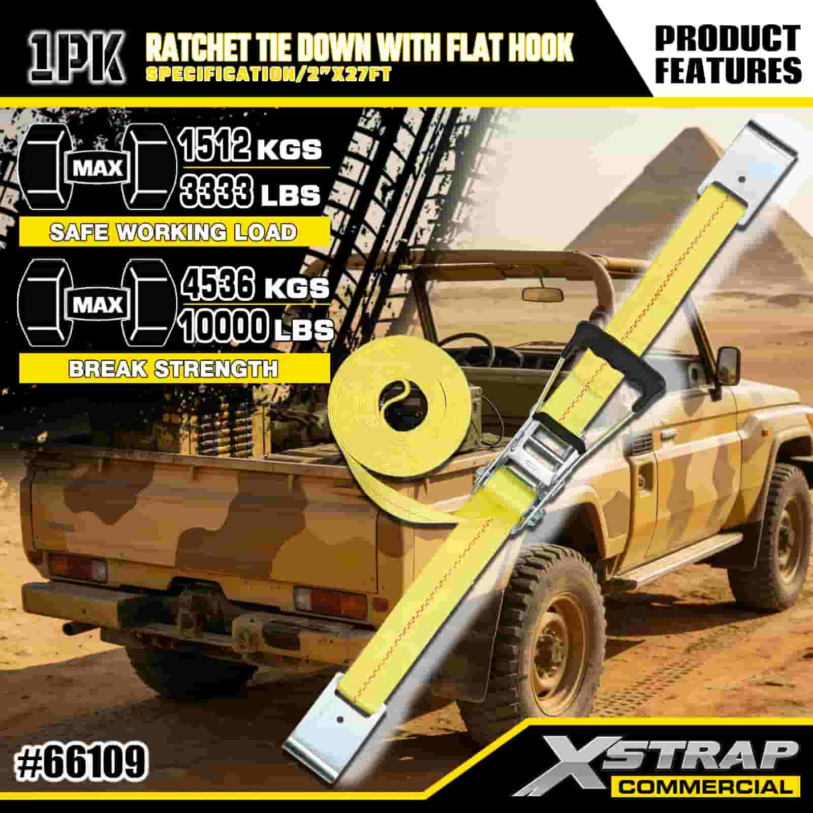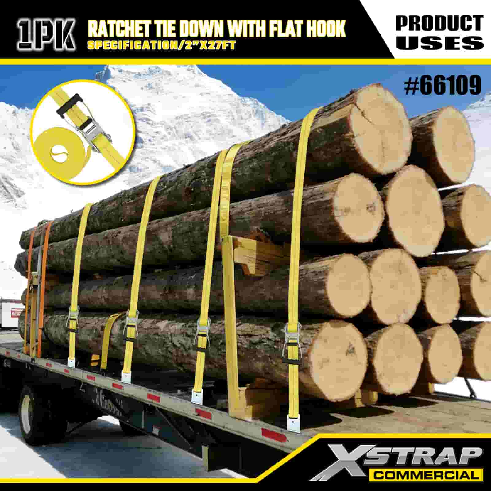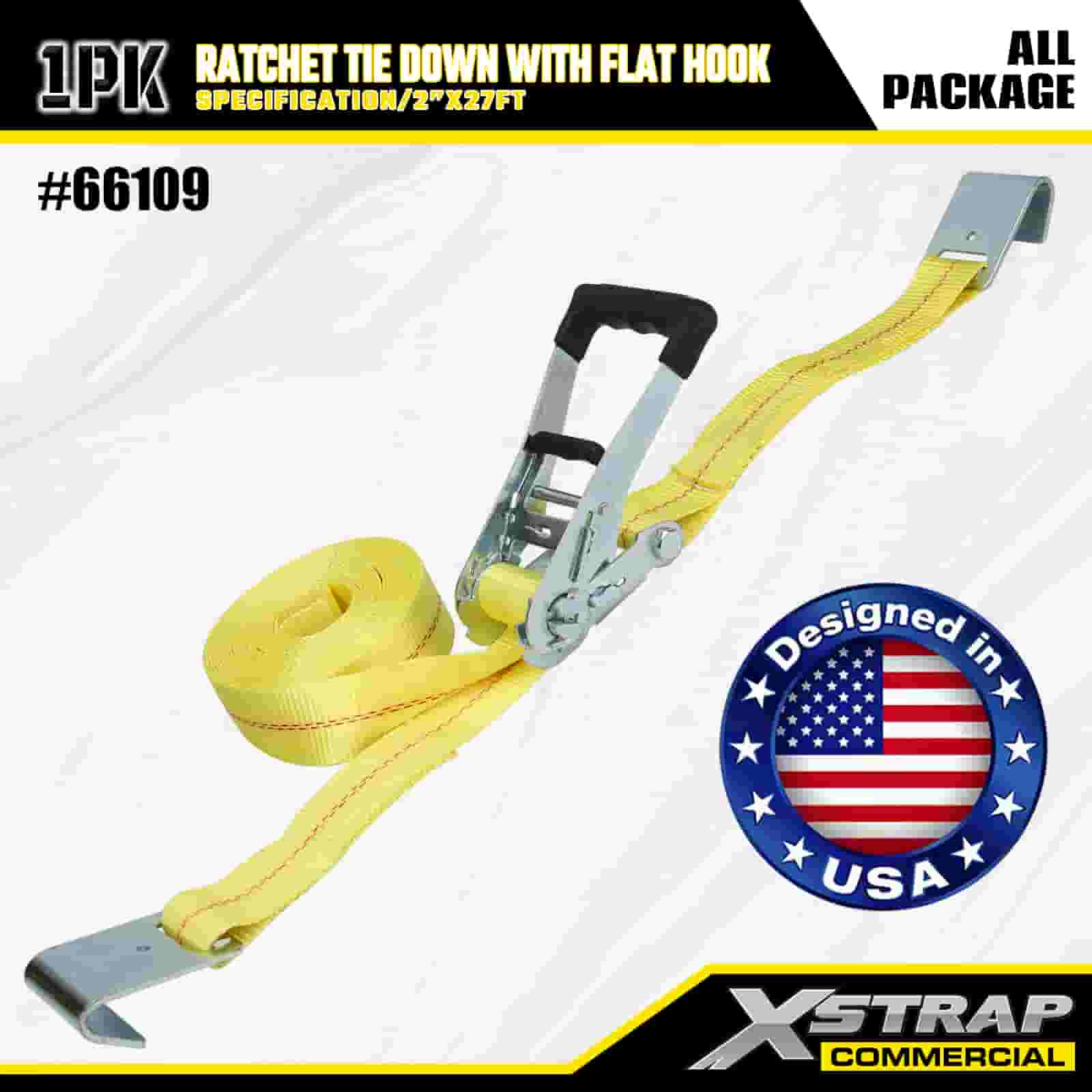 2" x 27' Ratchet Tie Down med flade kroge