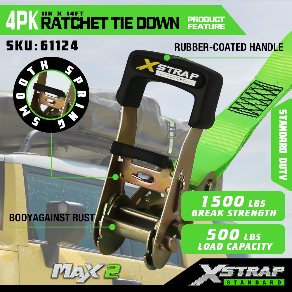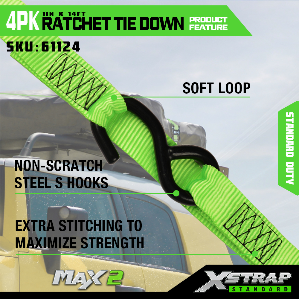 1" x 14' 4PK Ratchet Tie Down