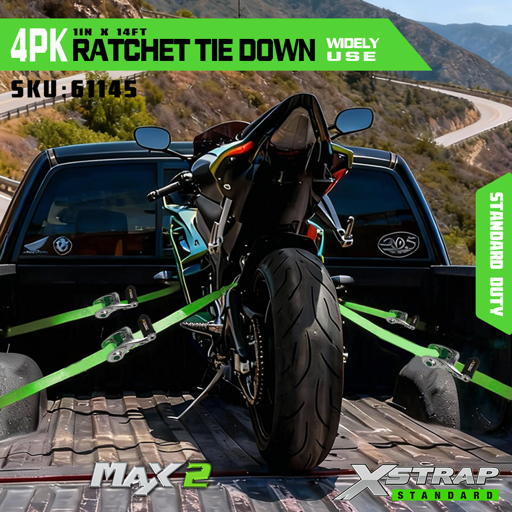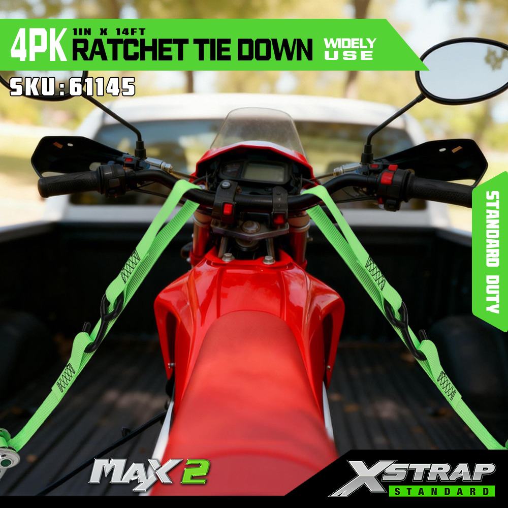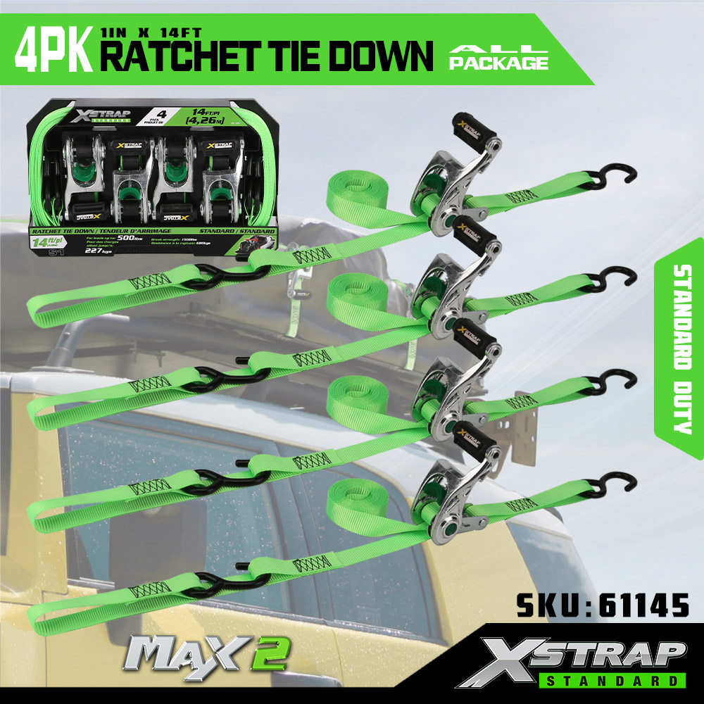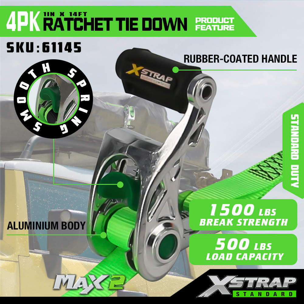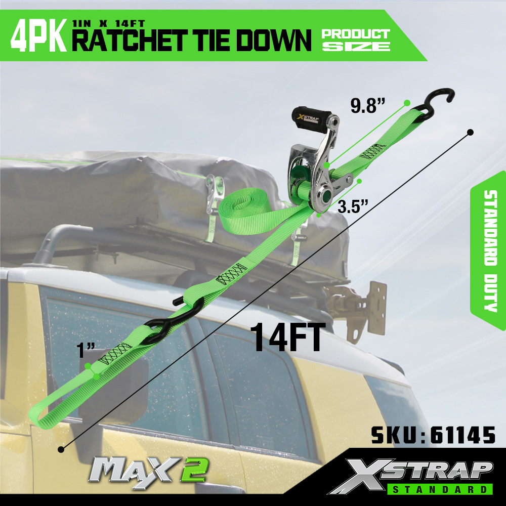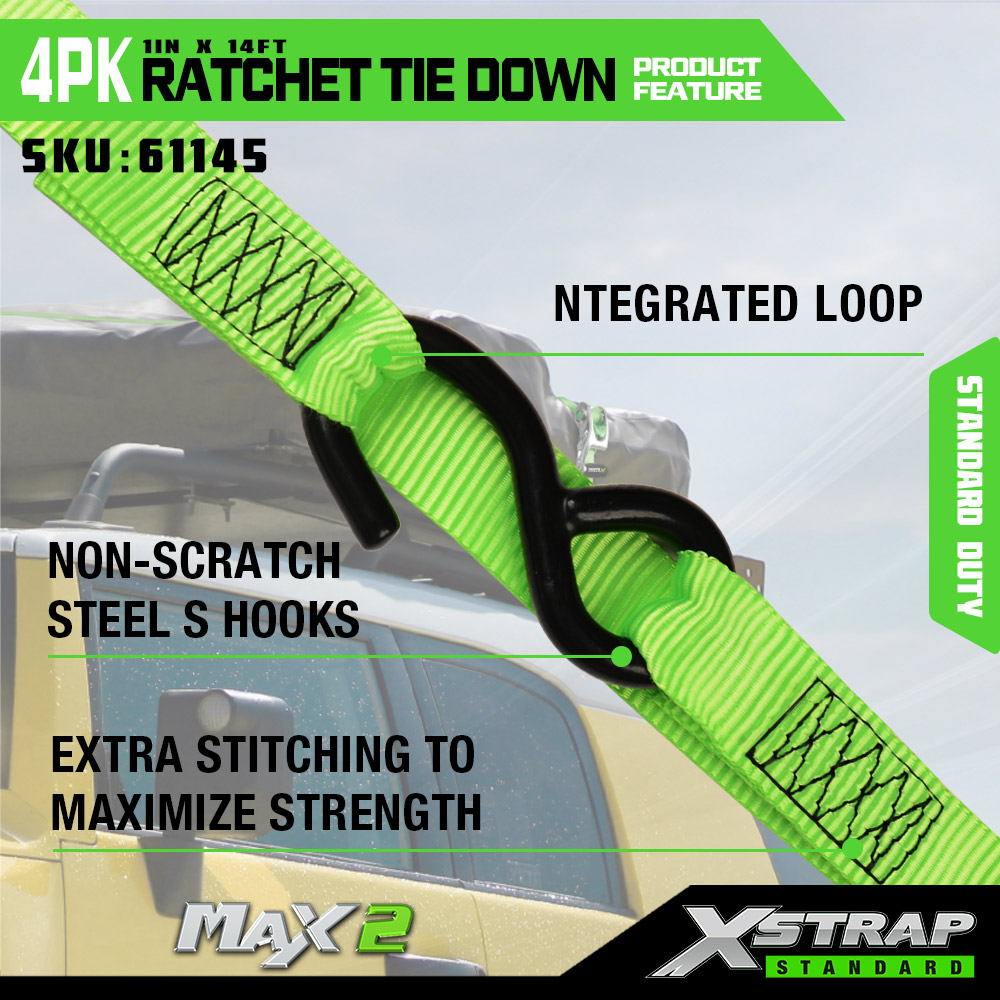 Xstrap 4-pack skraldebinding med blød løkke, 1" x 14" polyesterbindingsstrop Træk skraldestrop, 1000 lbs Kapacitet Lastsurringssikringsstropper med S-kroge til lastbil, SUV, bil top stativer motorcykel.