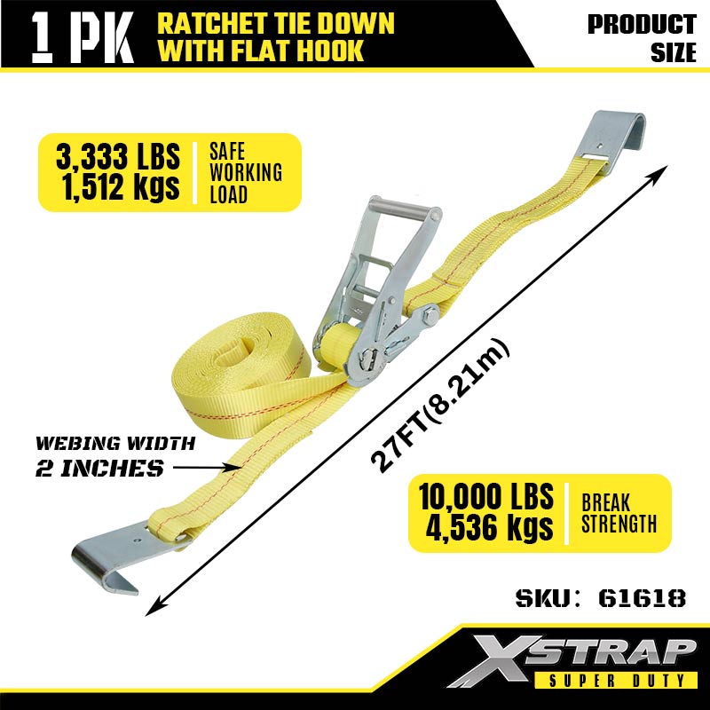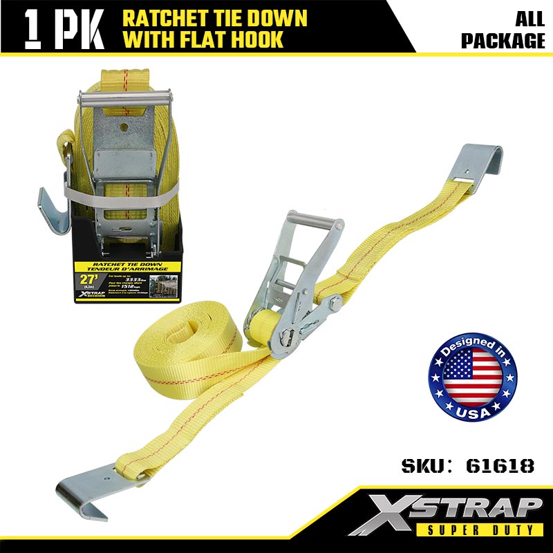 2" x 27' Ratcet Tie Down med flade kroge