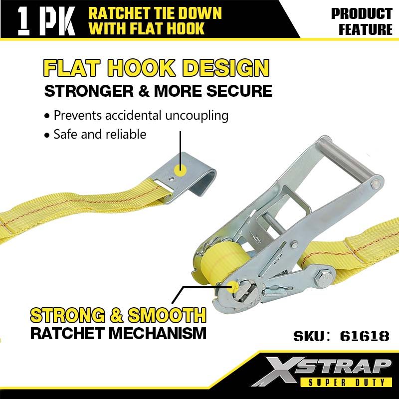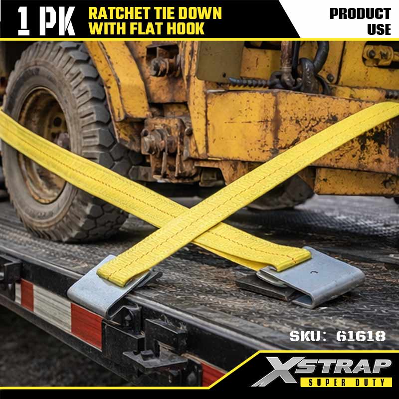 Xstrap Ratcet Tie Down med flade kroge, 2" x 27' Polyester Tie Down Strap Ratchet Strap, 3333lbs Kapacitet Cargo Surring Sikringsstropper med flade kroge til Heavy Duty Trailer, Flad Bed Trailer Skibåd, Lille Bil, Tungt Udstyr.